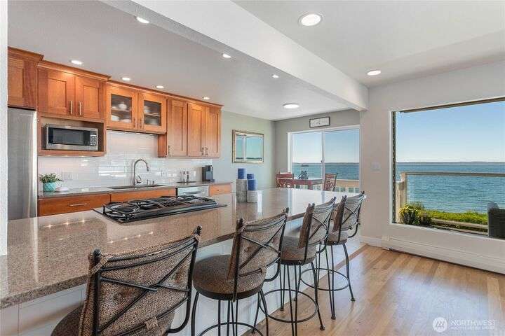This is it! Main floor single-level condo with clear unobstructed views of San Juan Islands, Bellingham Bay, Canadian mountains, boat traffic, wildlife and more. Not only does your covered deck overlook Bellingham's most popular park and trail hub, you can step right off condo property into Boulevard Park for unmatched access! Recently remodeled, this 1,200sqft unit features: primary bed w/ ensuite, bright/open kitchen & living room, hardwood floors, gas fireplace, additional storage and 2 covered parking spots. Short walks between historic Fairhaven & vibrant downtown Bellingham are right out your front door. Endless sunsets and everchanging seasonal views are calling you. Must see in person!