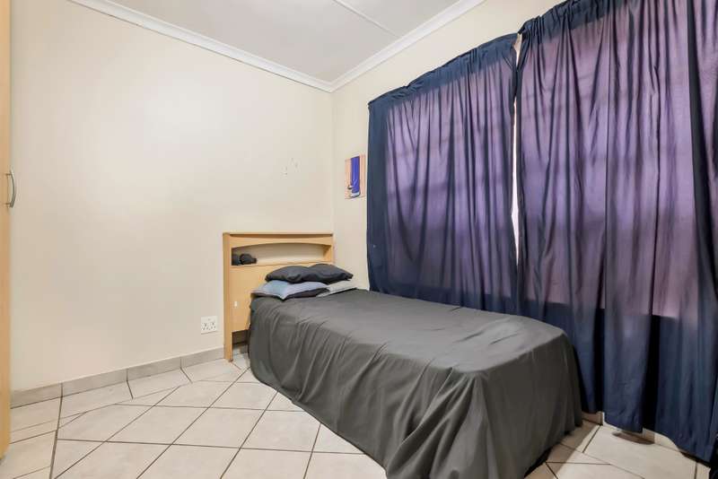 Sectional Title – In a small complex of 3 units – 65 sqm Entrance, open plan design with lounge/diningroom area. Kitchen with electric stove and oven. 2 Bedrooms. One bathroom- shower, basin, and toilet. Small entertainment area with built in braai. Good security, armed response, electric fence around the complex. Ideal for young professionals. Conveniently within walking distance to UJ and amenities - 2 cars. Electric motor gate.