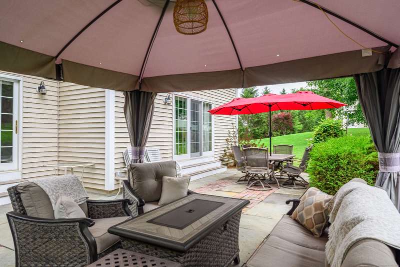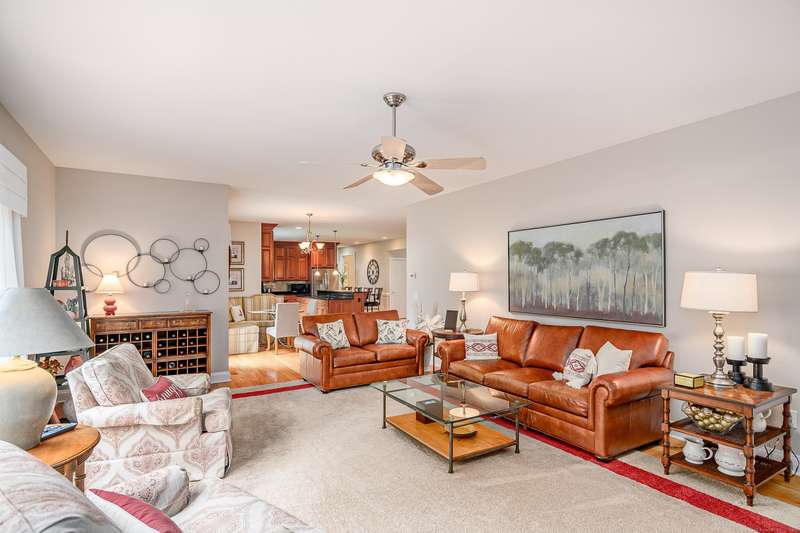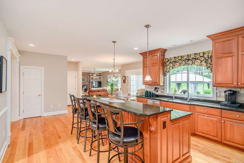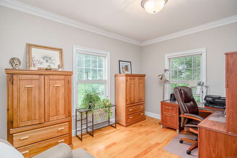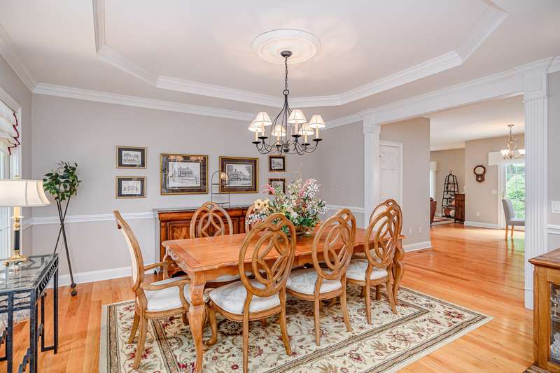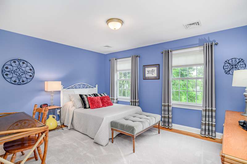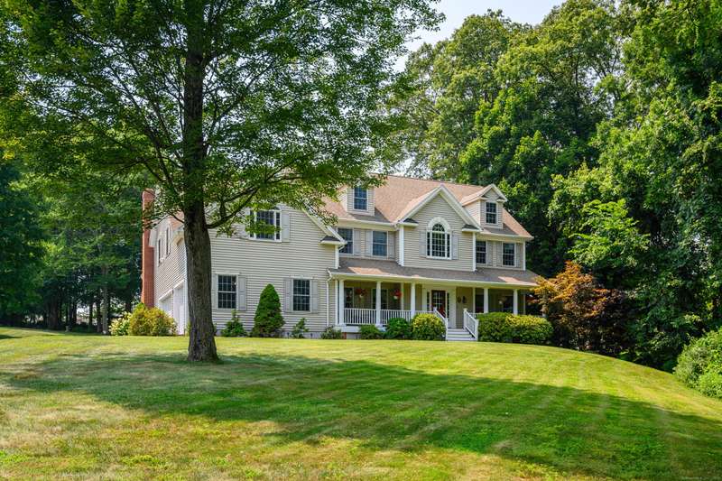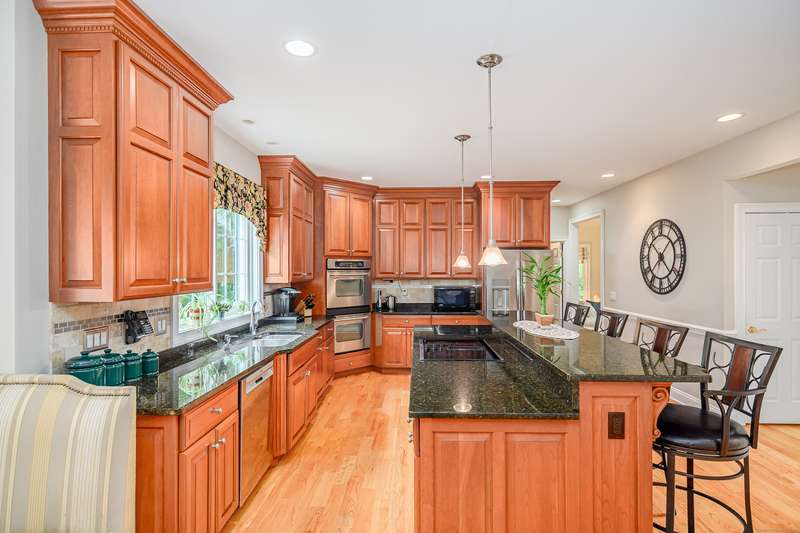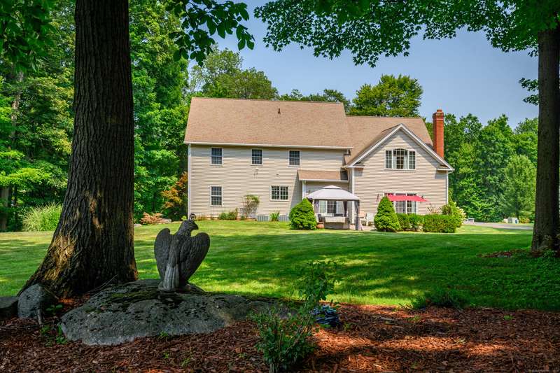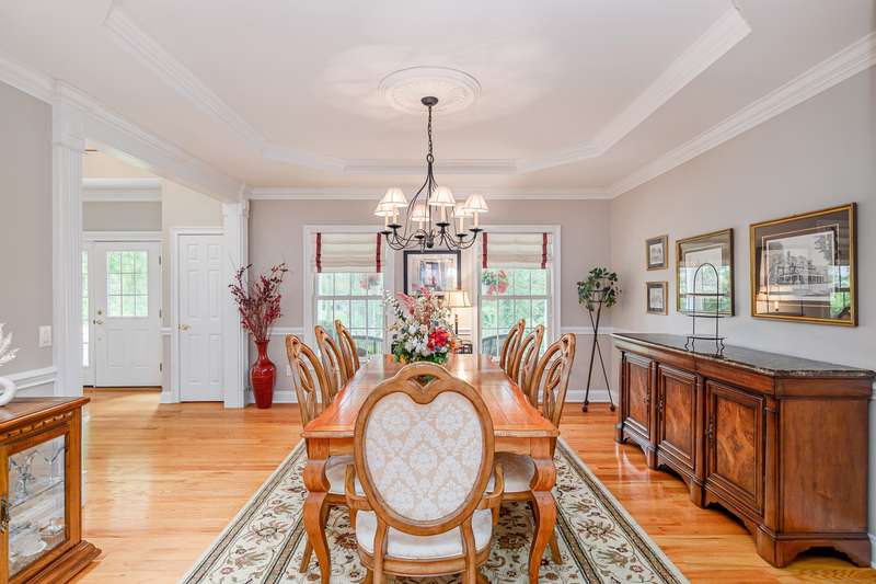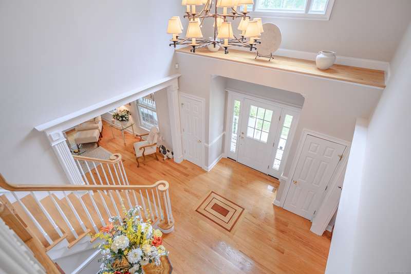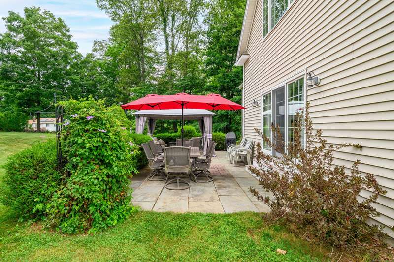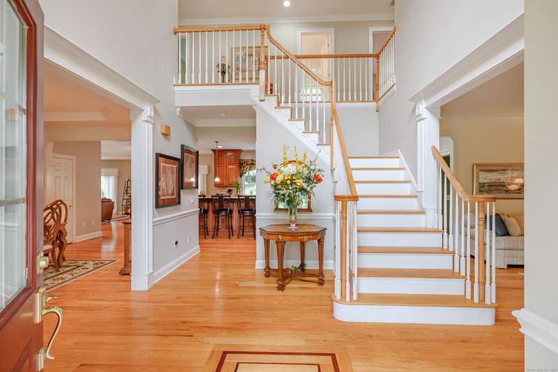 Welcome to this elegant 5040 sq ft, 4 Bedroom 3 1/2 Bath Center Hall Colonial located on a quiet cul-de-sac, offering timeless charm, modern amenities, and a prime commuter location. Step into a grand two-story foyer that opens to beautifully maintained hardwood floors and 9-foot ceilings throughout the main and upper levels. The home features a formal living room with detailed crown molding and a formal dining room perfect for entertaining. The spacious family room includes a cozy fireplace, custom built-ins, and sliders that lead to a professionally landscaped stone patio. The gourmet kitchen is a chef's delight, boasting granite countertops, stainless steel appliances, a generous dining area, and a walk-in pantry. A dedicated home office adds versatility to the main level. Upstairs, the luxurious primary suite is a true retreat, complete with a tray ceiling, walk-in closet, full bath, and a private office/sitting room. A junior suite with a private bath offers comfort for guests or