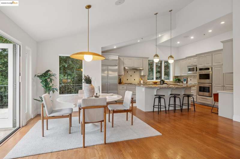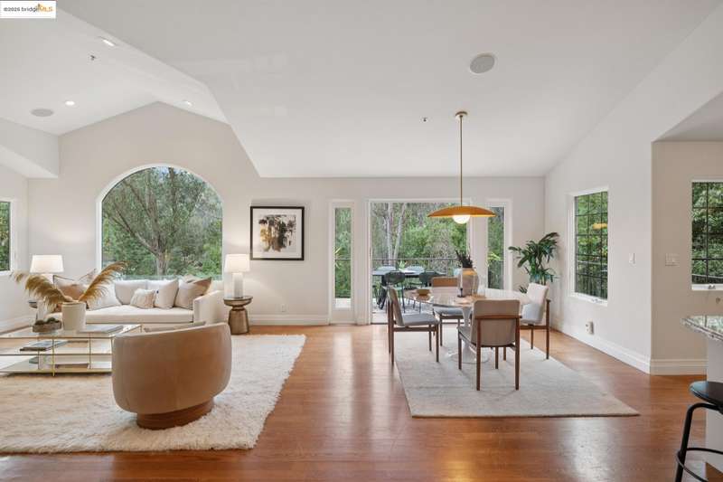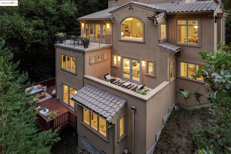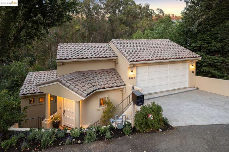 6389 Westover is a spacious and inviting Piedmont Pines Mediterranean contemporary with peaceful verdant views. On the main level, soaring ceilings, large picture windows, and a gas fireplace set the tone in the living room. The adjacent formal dining room, wet bar, and large eat-in chef’s kitchen with island that opens out to a sunny patio deck make entertaining options easy. Also on the main level: half bath and cozy family room with fireplace and built-in shelves. The second level features the primary suite with deluxe walk-in closet, sizable bathroom, and private patio. Two additional bedrooms, a second full bath, and the laundry room round out this level. Finally, the third level includes a fourth bedroom, full bath, an additional family room or potential home office/ workout space, and opens to an expansive wrap-around deck looking out to the surrounding trees and hillside views. A 2-car attached garage with storage and interior access provide everyday convenience. Not to be missed!