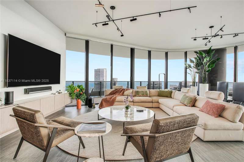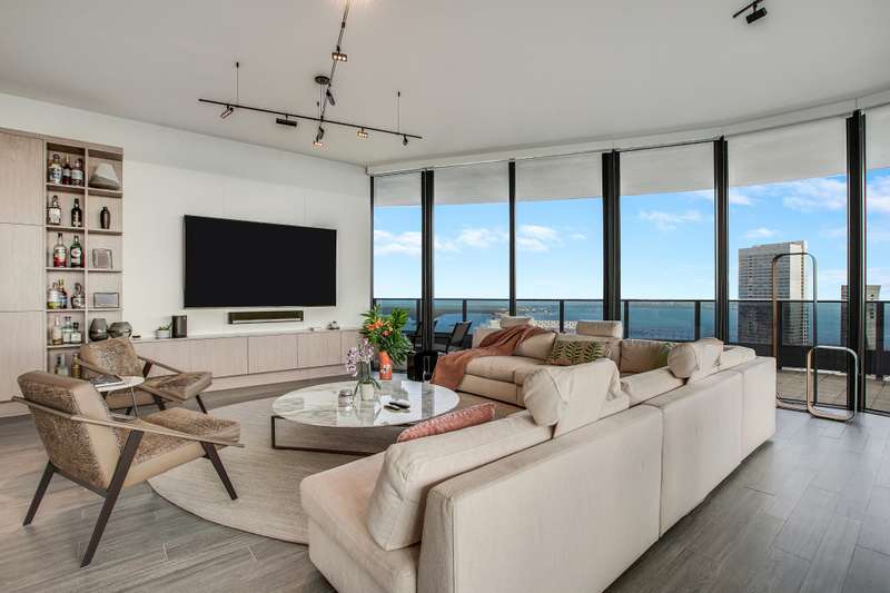 BRICKELL FLATIRON : SELLER MOTIVATED - PRICE REDUCTION MANHATTAN LIFESTYLE 10 MINUTES AWAY FROM CARIBBEAN BEACHES 64story luxury tower in Miami’s Brickell district offers 527 residences, including the exclusive Penthouse 6002.This stunning corner unit features expansive terraces with panoramic views of the city skyline and Biscayne Bay, fully furnished with elegant Italian minimalist design. Access is seamless with two express elevators and two assigned parking spaces plus valet. Residents enjoy unparalleled amenities: a 64th-floor rooftop with a pool, restaurant, fitness center, steam room, and sauna, plus a lap pool, theater, and billiards room. Developer's private unit featuring spectacular high-end finishes and unparalleled luxury. up to 4 parking spaces included. A MUST SEE!