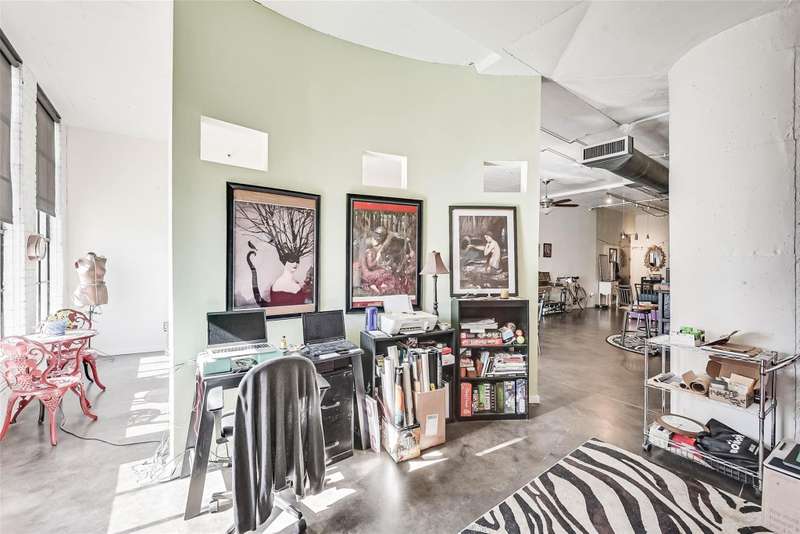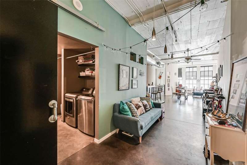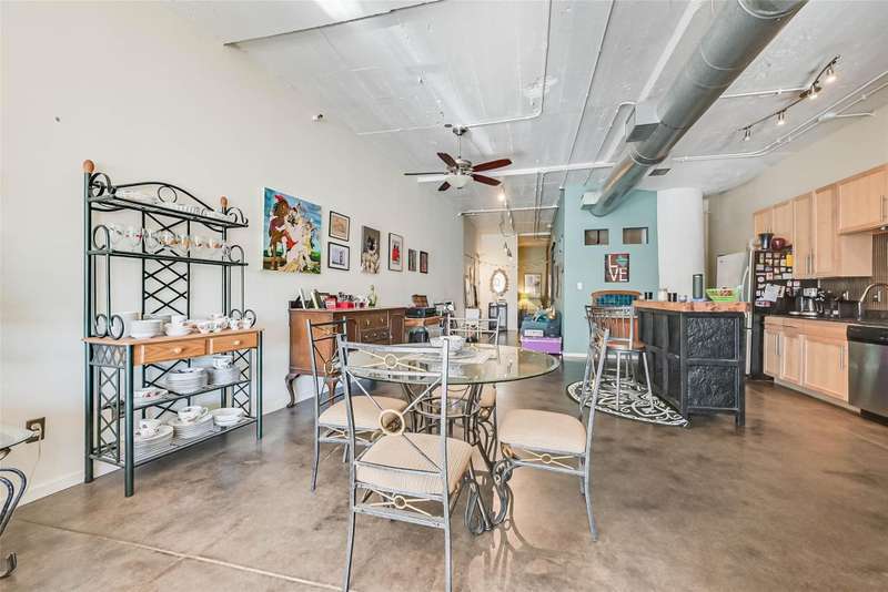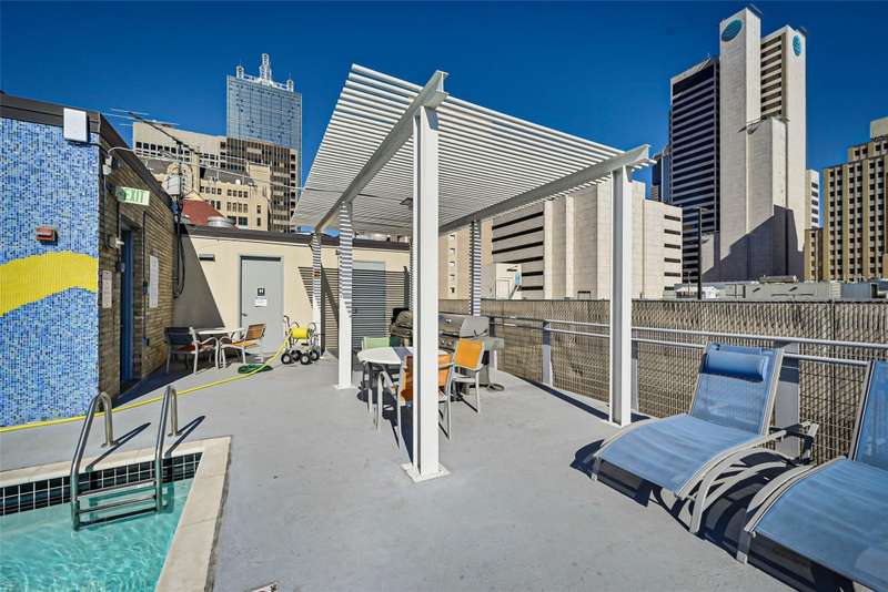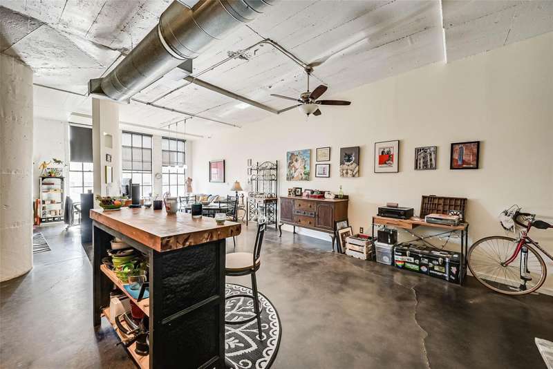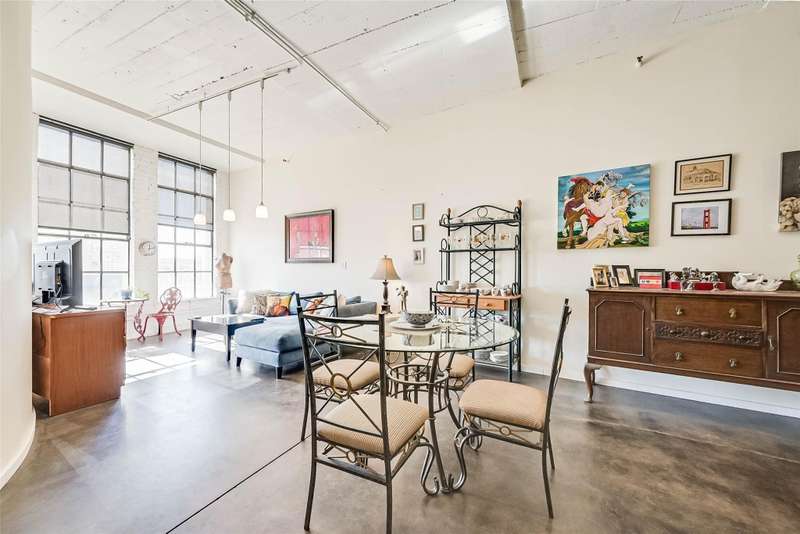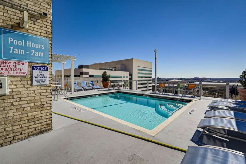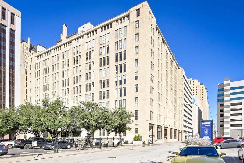Discover urban living at its best in this stylish loft, perfectly situated in the heart of downtown Dallas just moments from dining, entertainment, and the vibrant AT&T Discovery District. Located in the unique SoCo Urban Lofts building, this residence offers a character and charm that set it apart from other condo communities. The loft welcomes you with an open layout designed for both comfort and entertaining. The expansive living area, accented by a versatile dividing wall, offers endless possibilitiescreate a second bedroom, home office, formal dining space, or additional lounge area. The kitchen is thoughtfully designed with a hidden nook beside the refrigerator, ideal for extra storage, a pantry, or even a compact work station. Soaring windows flood the space with natural light while showcasing sweeping views of the citybeautiful by day and stunning at night. The home also includes an assigned garage space with gated entry and a private storage unit conveniently located on the same floor. Residents of SoCo enjoy premium amenities including concierge service, a rooftop pool and grilling area, and a well-equipped fitness center. Practical updates include an HVAC system replaced in 2019, plus a washer and dryer that remain with the unit. Utilities such as water, sewer, trash, and high-speed internet are all included, making this loft both stylish and convenient.