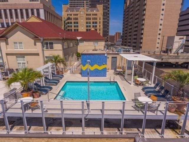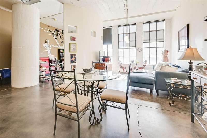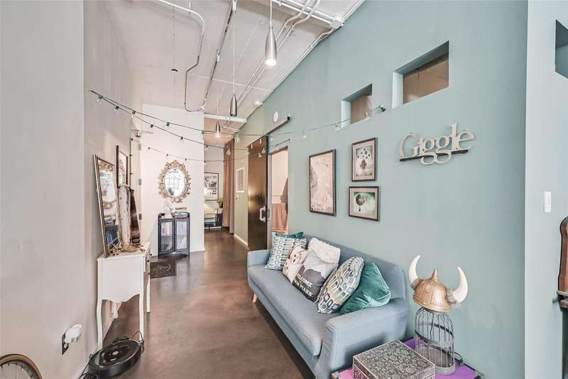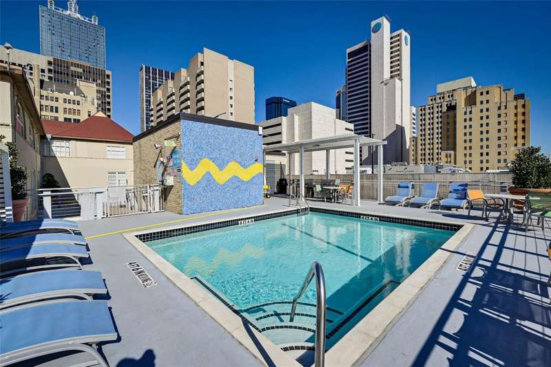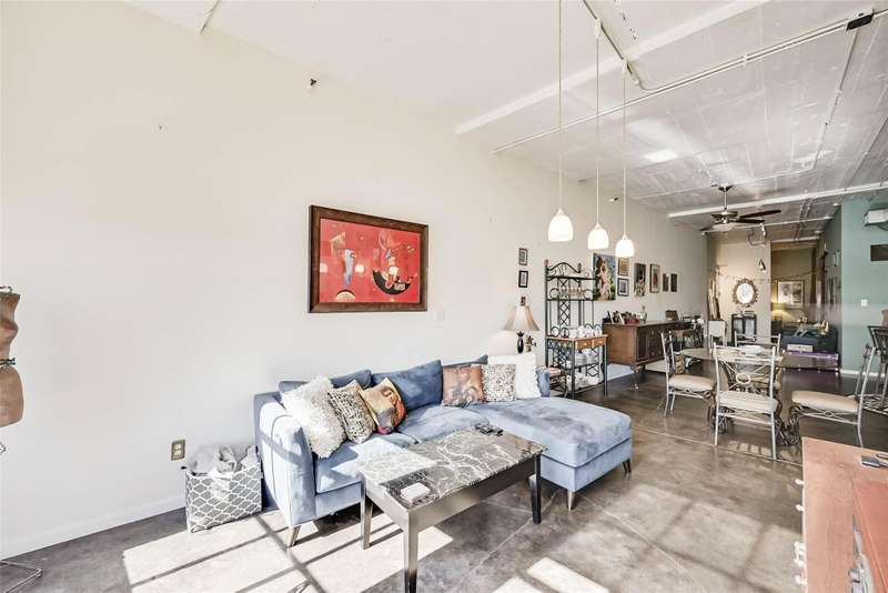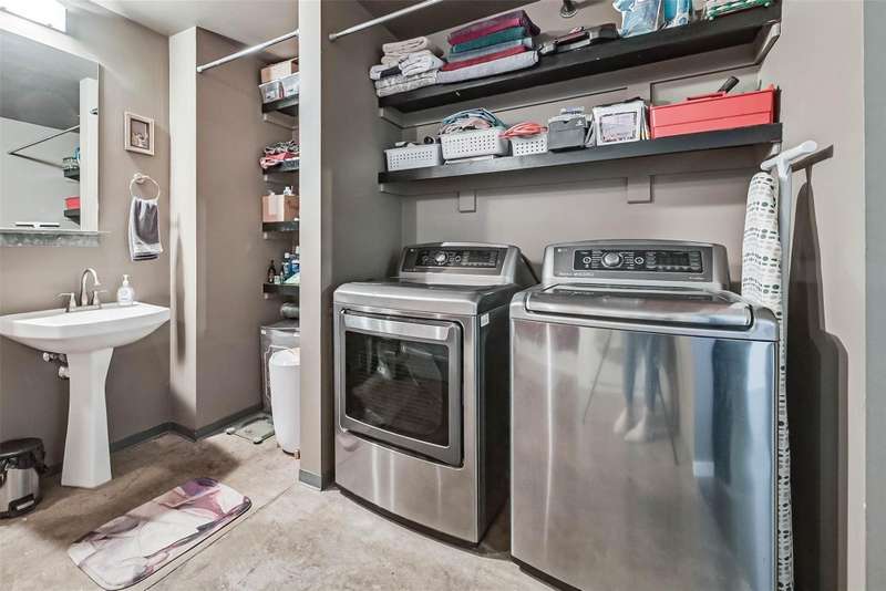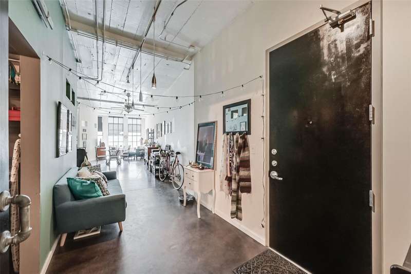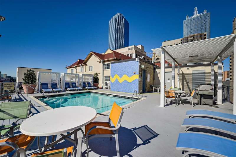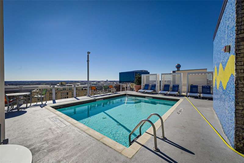 Discover urban living at its best in this stylish loft, perfectly situated in the heart of downtown Dallas just moments from dining, entertainment, and the vibrant AT&T Discovery District. Located in the unique SoCo Urban Lofts building, this residence offers a character and charm that set it apart from other condo communities. The loft welcomes you with an open layout designed for both comfort and entertaining. The expansive living area, accented by a versatile dividing wall, offers endless possibilitiescreate a second bedroom, home office, formal dining space, or additional lounge area. The kitchen is thoughtfully designed with a hidden nook beside the refrigerator, ideal for extra storage, a pantry, or even a compact work station. Soaring windows flood the space with natural light while showcasing sweeping views of the citybeautiful by day and stunning at night. The home also includes an assigned garage space with gated entry and a private storage unit conveniently located on the same floor. Residents of SoCo enjoy premium amenities including concierge service, a rooftop pool and grilling area, and a well-equipped fitness center. Practical updates include an HVAC system replaced in 2019, plus a washer and dryer that remain with the unit. Utilities such as water, sewer, trash, and high-speed internet are all included, making this loft both stylish and convenient.