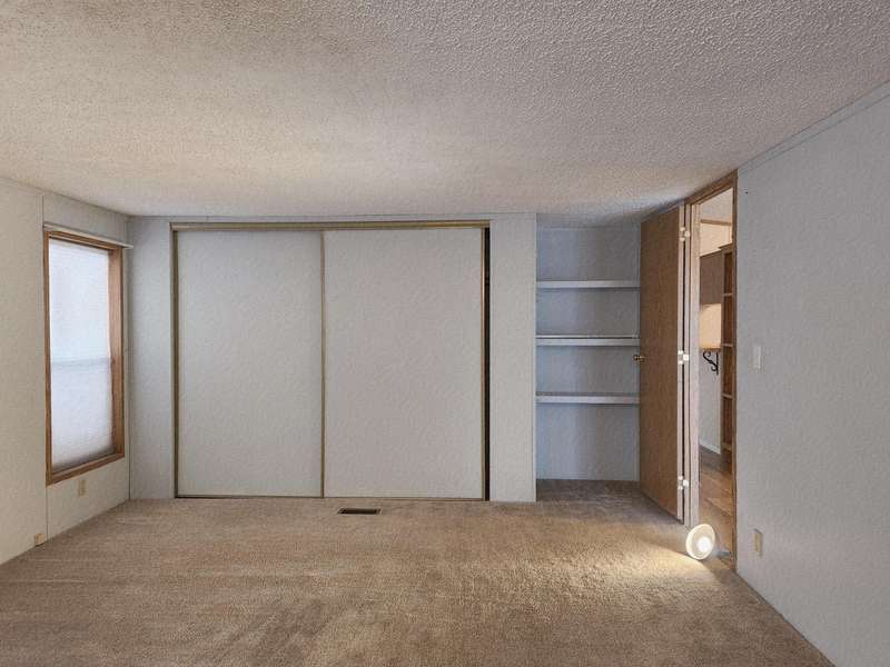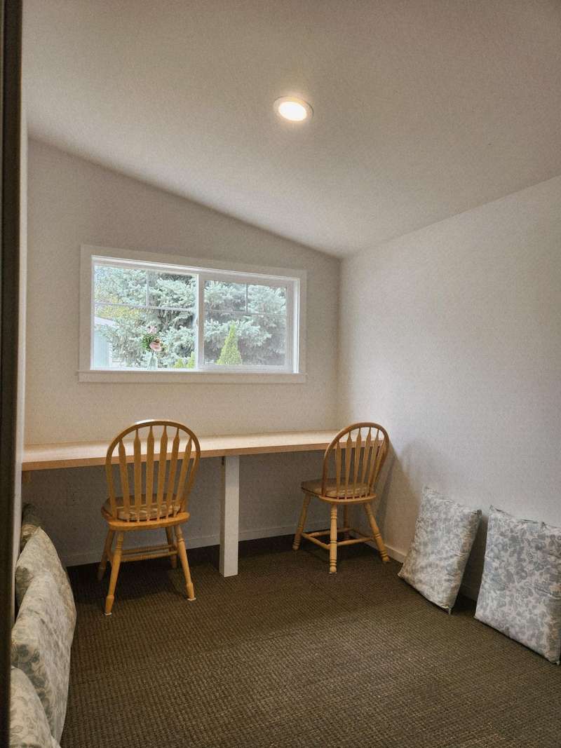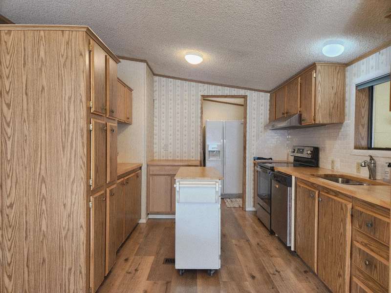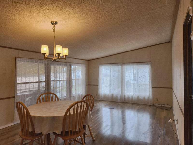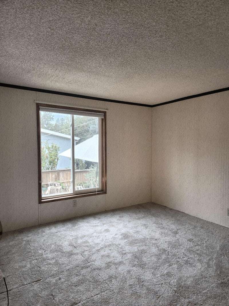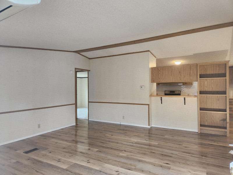 Welcome home to Suntree Village, one of Bend's finest 55+ parks. This home is 1320 sq ft, has 3 bedrooms, and 2 bathrooms, a Living room and Family room with vaulted ceilings, lots of windows and new wide plank vinyl flooring, a nice kitchen with new counters, sink, backsplash and stove, all appliances are included, large primary suite with large closet, and good separation from the other rooms, large utility room with stackable washer/dryer and a pantry. A Studio with window, desk, electricity and carpet. A beautiful backyard to relax in. Also, Heat Pump, Carport, Storage unit. All in walking distance to The Larkspur Community Center where you can swim and exercise. Space Rent is $647.00 mo. includes water/sewer, trash, and use of the Clubhouse.