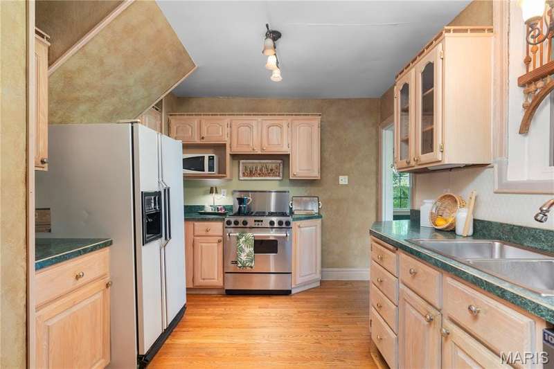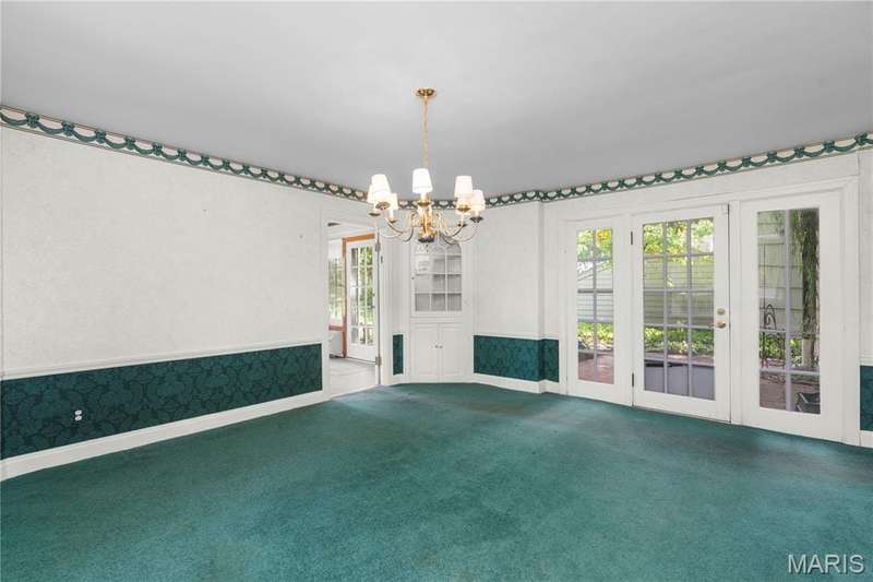 Light, bright, Cape Cod style home backs to Greenbriar CC 18th hole golf course! Beautiful views surround this home! Lush green landscapes, mature trees / shrub/plants a gardener's dream and all in the Kirkwood School District! Lovingly maintained by long time owner, main floor family room, formal size dining room, kitchen all appliances stay as is, Jenn~Air range, main floor office space, fabulous glassed in porch overlooking pretty yard space, some wood floors, LR gas fireplace, 2 bedrooms plus a bonus room on the upper level! Main floor laundry, newer HVAC, 2 car tuck under garage, patio and gorgeous views from every angle of this charming home! Ready to accept a new owner! AS-IS Sale, no inspections provided. Minutes from Downtown Kirkwood, Hwy 270 and Hwy 44!