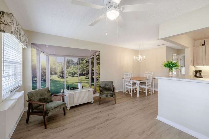 Beautiful turnkey 1/1 in Vista Royale, a vibrant 55+ community close to everything. Brand new flooring, fridge, dishwasher and accordion shutters for piece of mind. Enjoy the pools, fitness, tennis courts, shuffleboard and scheduled activities. Clean, bright and immediately available. Sizes are approx./subject to error. Property and contents represented in photos subject to change.