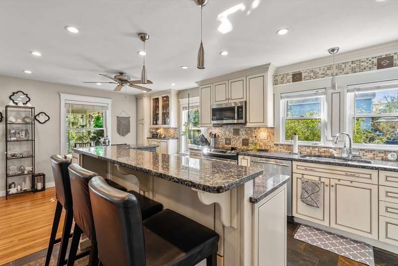 Welcome to Munroe Street, this beautiful cape home is situated in the desirable Riverside area in a highly sought after neighborhood. This move in ready 4 bed 2 bath home offers gorgeous updates and has been meticulously cared for. The first level has a beautifully updated kitchen with granite counter tops and custom cabinets, that has an open concept into the family room and dining area with hardwood floors throughout, as well as a large sunroom in the front entrance. You will also find a renovated full bath and bedroom on the first floor as well as an over sized mud room in the back entrance that leads to a large deck. On the second floor there are 3 more bedrooms, with one being used as the perfect office space, as well as another bathroom. Outside you will find a gorgeous fenced in, level lot, perfect for entertaining. This neighborhood has so much to offer, with wonderful neighbors, quiet streets, and easy access to major highways, commuter rail, restaurants, parks, and schools!