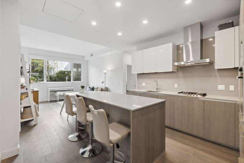Downsizers, young professionals & everyone in between—this one checks all the boxes. This rare 3 bed, 2 bath + den/office single-level townhome offers effortless living with 10ft ceilings, open-concept design, and oversized European windows for max light & privacy. The kitchen’s a chef’s dream with a large island & premium Miele appliances. Tucked away on the quiet courtyard side, enjoy serene garden views while being just steps from the best of the city. 2 parking, 2 storage lockers, and direct access to Queen Elizabeth Park complete the package.