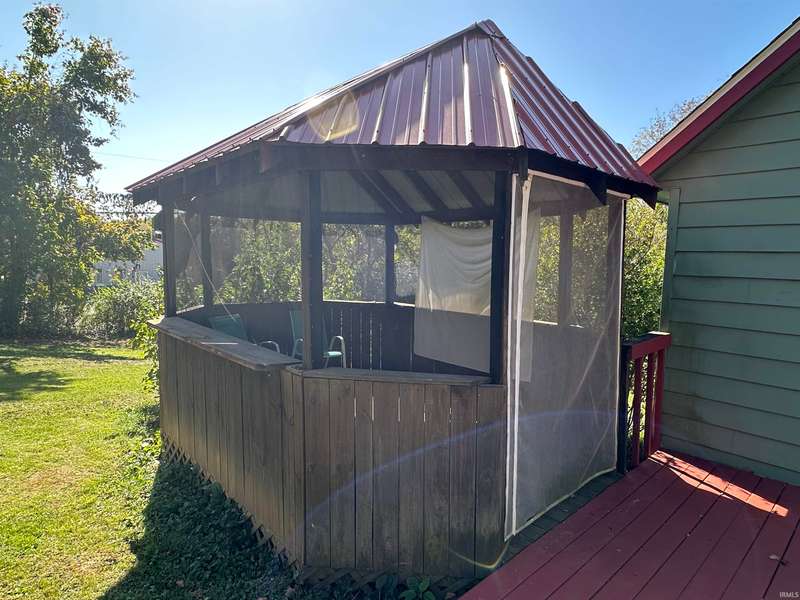 YOU MUST SEE THIS CHARMING 4 BEDROOM, 1 BATHROOM HOME OVER A PARTIAL BASEMENT WITH SO MANY UNIQUE FEATURES. ENORMOUS LIVING ROOM AREA OVERLOOKS THE FRONT YARD. FORMAL DINING AREA IS CENTERED IN THE HOME AND IS CONVENIENT TO THE KITCHEN AREA. MASTER BEDROOM EXITS ONTO THE REAR PORCH AND GAZEBO AREAS. ENJOY THE FRONT AND REAR COVERED PATIOS WITH PLENTY OF PRIVACY. SPACIOUS 2 CAR DETACHED GARAGE WITH UTILITIES AND CONCRETE FLOOR CONVENIENT FOR PARKING. 2 UTILITY SHEDS PROVIDE A WORKSHOP AND ADDITIONAL STORAGE SPACES. THIS LOVELY CORNER LOT AND HOME OFFER IMMEDIATE POSSESSION WITH ALL APPLIANCES AND A ONE YEAR HSA HOME WARRANTY PROGRAM.