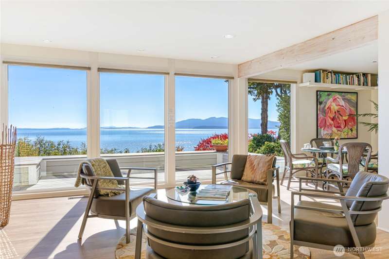 Tranquil and rare beachfront property with NO TRAIN crossings and sweeping 180° south-facing views of Bellingham Bay, San Juan Islands and the Olympic Mtns. Enjoy 58’ of private beachfront with switchback path for easy access. Become captivated by cinematic tideland vistas and abundant birdlife from the wraparound deck and floor-to-ceiling windows. Private yet convenient, live only 8 mins to Downtown Bellingham. This light-filled 3BR, 2.25BA, 1,817 sqft home features a semi-finished 756 sqft basement with separate entrance and detached garage on .5+ acres. Easy to customize, it was painstakingly rebuilt to endure the marine environment with superior weatherproofing, water mitigation and structural integrity. Your private escape, awaits!