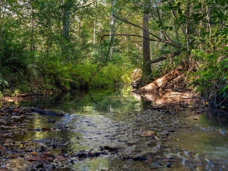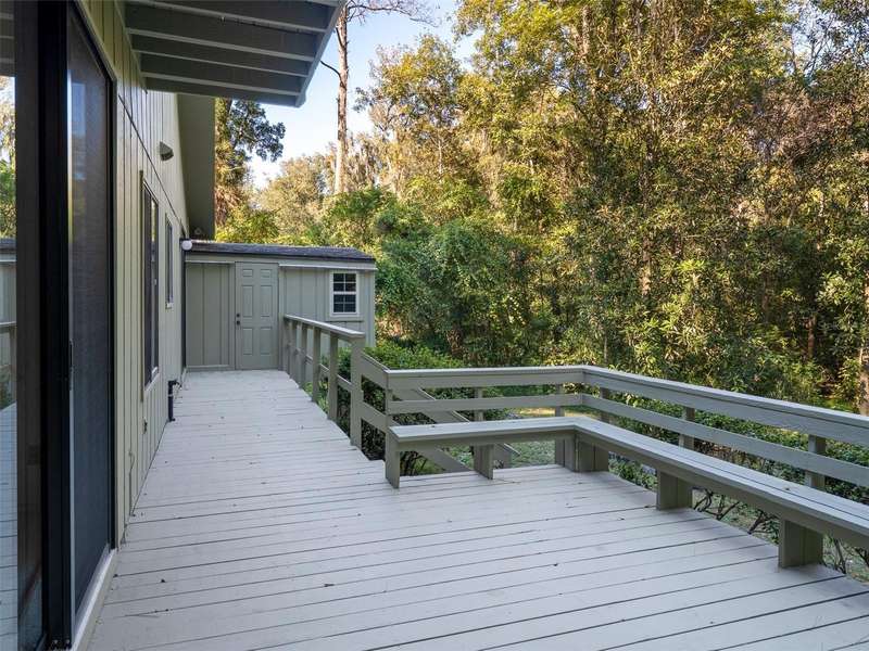 This home is a rare find—where artful design meets natural beauty. Set on nearly an acre along a wooded creek in an established NW neighborhood, the property offers the feeling of a private nature retreat without sacrificing proximity to everything that you love about Gainesville. With bold mid-century lines and lush views, every space of this home feels connected to the outdoors. ~~ Inside, the living area welcomes you with dramatic ceiling height and expansive windows that create a seamless flow between the interior and the surrounding landscape. The kitchen offers both style and convenience, featuring sleek cabinetry, quality finishes, and easy access to both of the main living and dining areas—perfect for entertaining or everyday living. ~~ Multiple decks extend your living areas outdoors, ideal for relaxing, entertaining, or simply taking in the peaceful views of the creek and woods below. The home features four bedrooms and three baths, including one bedroom that could serve as an office, library, or creative retreat, complete with stylish and functional built-in shelving. An attached darkroom offers additional storage, a hobby nook, or flex space. The primary suite includes a private balcony, a serene spot to take in the surrounding landscape each morning. Additional home highlights include a relaxing built-in sauna, indoor laundry room, and an oversized two-car garage. Roof is durable metal shingles for peace of mind. ~~ Thoughtfully maintained, this home reflects a commitment to quality and attention to detail in every corner. From the well-cared-for finishes to the functional and stylish features, it combines everyday ease with timeless design. Ideally situated in The Valley, it offers the best of both worlds—a tranquil neighborhood setting just moments from dining, shopping, and schools. Distinctive, comfortable, and surrounded by nature—this is Florida living at its most inspiring. **Some photos are virtually staged**