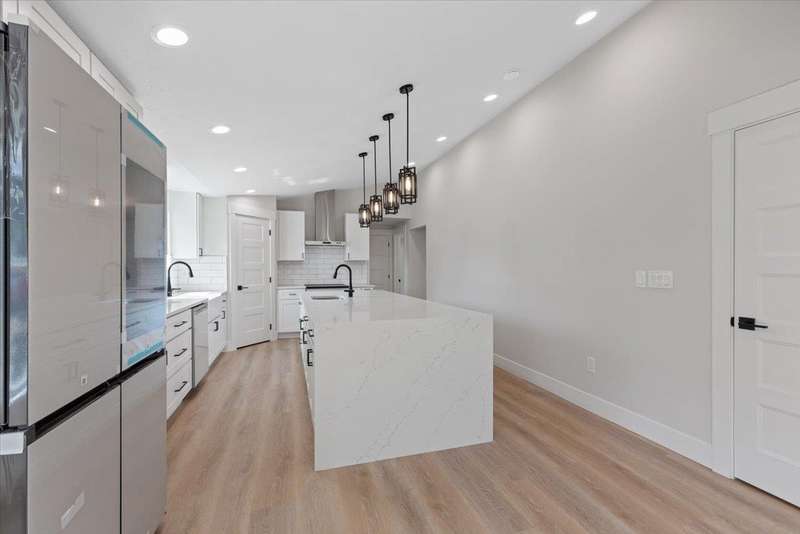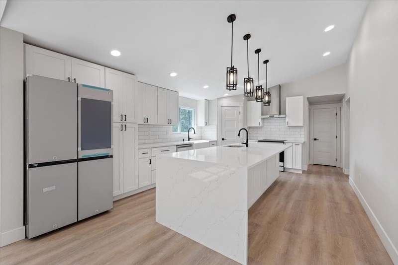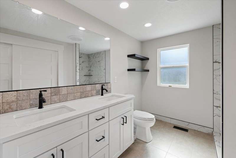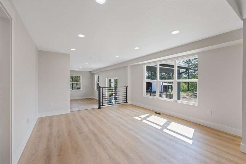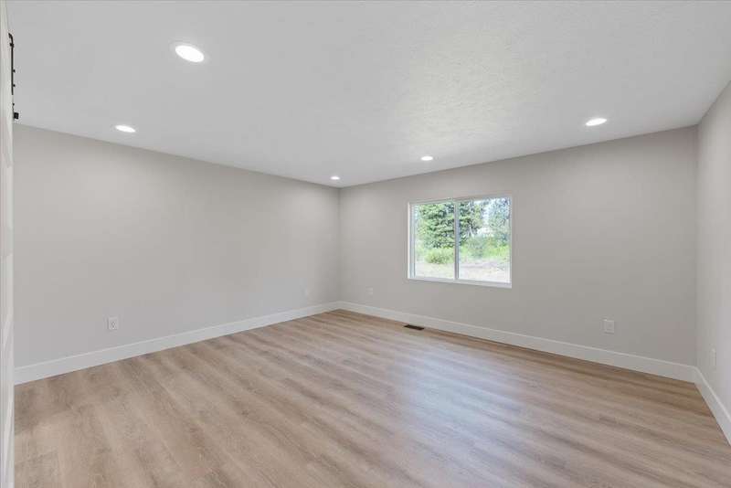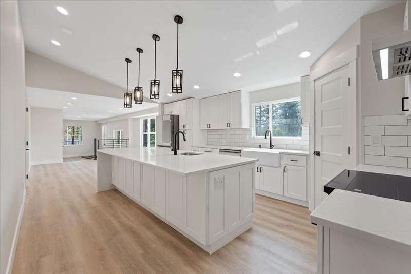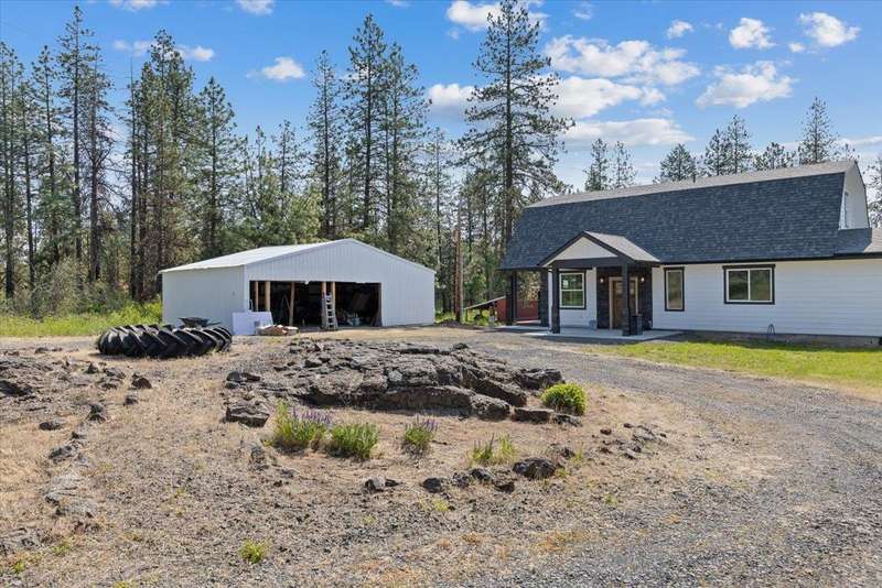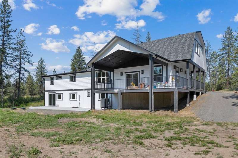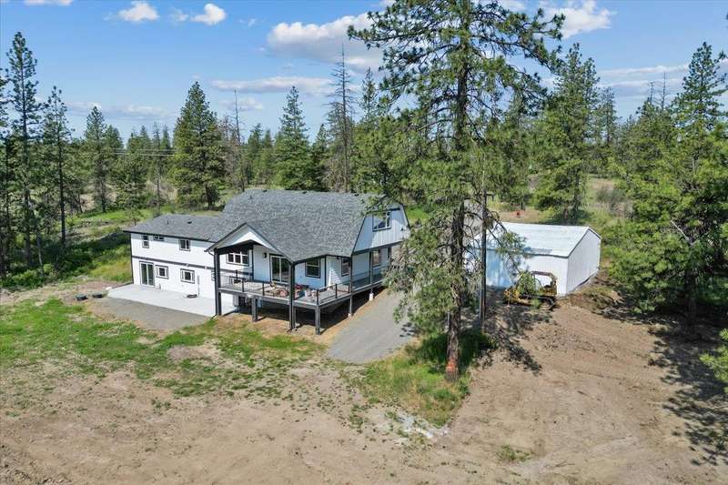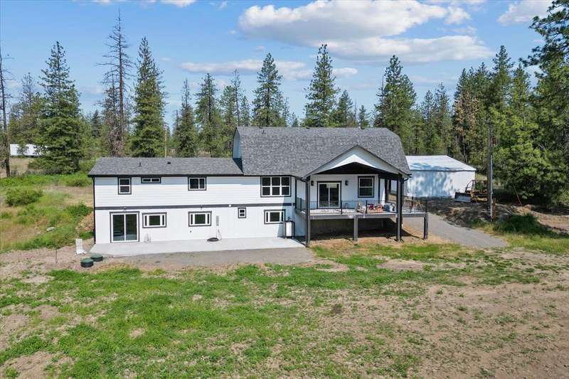 Totally new home inside and out with 6 bedrooms and 5 bathrooms on 5.37 acres. It has been totally updated w/high end kitchen appliances to include a smart refrigerator, induction stove and hard surfaces that waterfall the large island. Three of the bedrooms have on suite bathrooms and either could be used as the primary bedroom or could be used for multi generational home. Two of the on suite bedrooms are on the upper level and one on the main floor. The main floor is done in LVP flooring throughout. The dining area steps down to the large living/family room w/lots of windows and a slider to the covered back deck that wraps around the end of the house. The basement is one large family room w/slider to the back patio and includes a bedroom, bath and laundry room. While being updated, all the electrical and plumbing was updated including electric panel. A new forced air electric furnace was installed with central air conditioning. Outbuildings include a two car oversized garage and large barn.