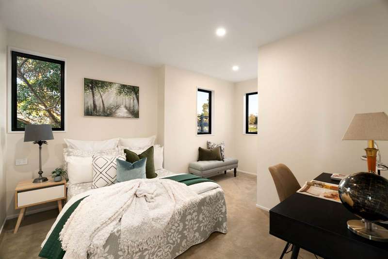 With one already sold, only a limited number remain. Secure your future home for generations today. Priced to sell from $949k, these new freehold residences in the Eastern Bays represent a rare chance to secure one of Auckland’s most refined coastal homes. Designed with architectural precision, each of the 4-bedroom, 3-bathroom homes balances timeless luxury with effortless modern living. Key Features: • Freehold homes with titles & CCC issued and ready for immediate settlement. • 10-Year Stamford Building Warranty ensuring peace of mind for years to come. • Water views across Half Moon Bay with generous decks and living areas that capture the harbour outlook. • Secure internal garaging & landscaped gardens. • Acoustic build spec sound-insulated floor systems and intertenancy walls. • Solid core internal doors ensuring additional soundproofing. • Two heat pumps in both the living room and master bedroom. • Security features including intercom, alarm system. • Electronic driveway gate access and pedestrian gate for complete peace of mind. • Walking distance to Glen Innes train station, buses, shops, and cafés. Minutes away from Tamaki Pathway and St Heliers Beach. Interior Highlights: • Statement entry – bespoke cabinetry and a finely detailed timber handrail set the tone on arrival. • Ground floor versatility - a private double bedroom with tiled bathroom nearby, perfect for extended family, teenagers, or a home office. • Designer kitchen – stone benchtops, Bosch appliances, real wooden veneer cabinetry with integrated LED lighting, and premium soft-close systems. • Living level – open-plan living and dining flowing to large entertainer’s decks; a custom wall-to-wall entertainment unit that elevates both style and function. • Boutique master suite – full timber feature wall with integrated LED accents, generous wardrobes, and a fully tiled ensuite with frameless rain shower. • Bathrooms – sleek, fully tiled spaces with floating vanities, premium tapware, frameless showers, and heated towel rails. • Bedrooms – light-filled, spacious, and adaptable, designed to suit families or lifestyle buyers needing flexible space.