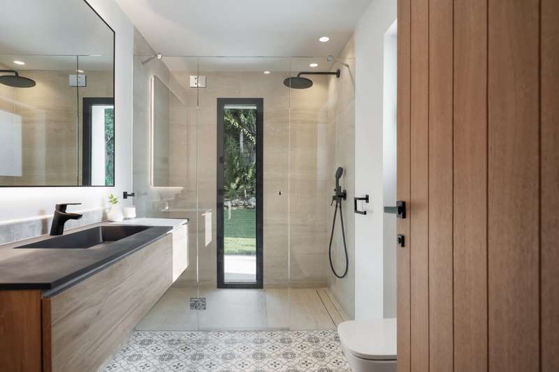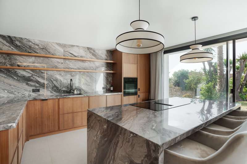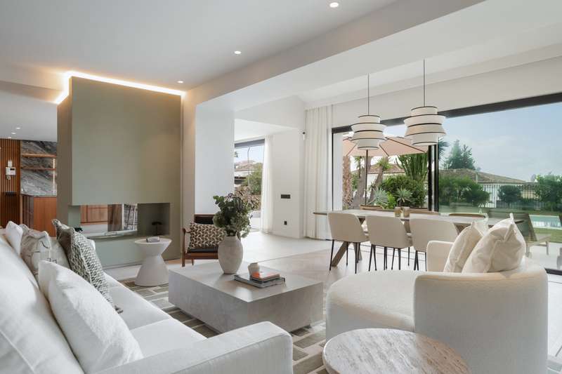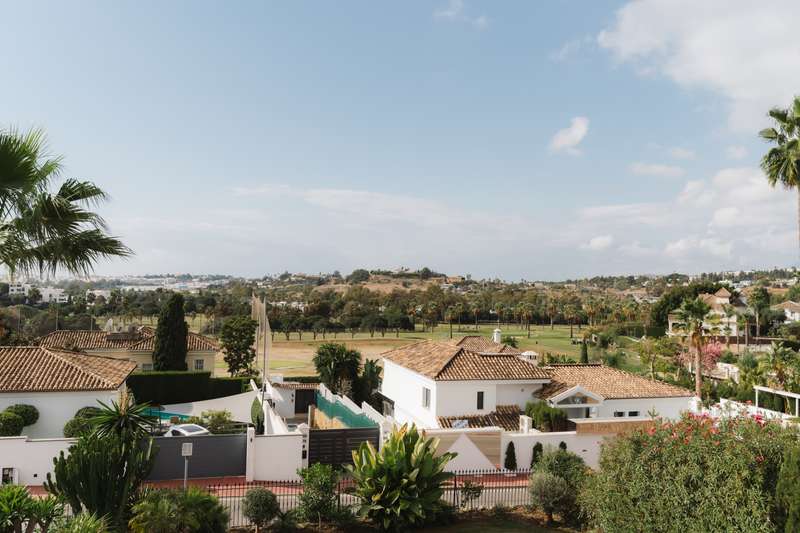 Contemporary Scandinavian Villa near Los Naranjos Golf – Marbella’s Golf Valley Just a short walk from the prestigious Los Naranjos Golf Club, this fully renovated luxury villa perfectly blends Scandinavian elegance with the relaxed lifestyle of Marbella. Its south-facing orientation ensures natural light all day long and beautiful open views across the Golf Valley, one of the most desirable areas of the Costa del Sol. The main living area features an open-plan layout with high ceilings, floor-to-ceiling windows and natural wooden floors, creating a bright and inviting atmosphere. The modern kitchen, fitted with Miele appliances and marble countertops, combines functionality and style — ideal for both everyday living and entertaining. Upstairs, the master suite offers a serene retreat with a walk-in wardrobe, private terrace, and a spacious bathroom with both bathtub and shower. From the rooftop terrace, you can enjoy panoramic views over the Golf Valley and even glimpses of the Med