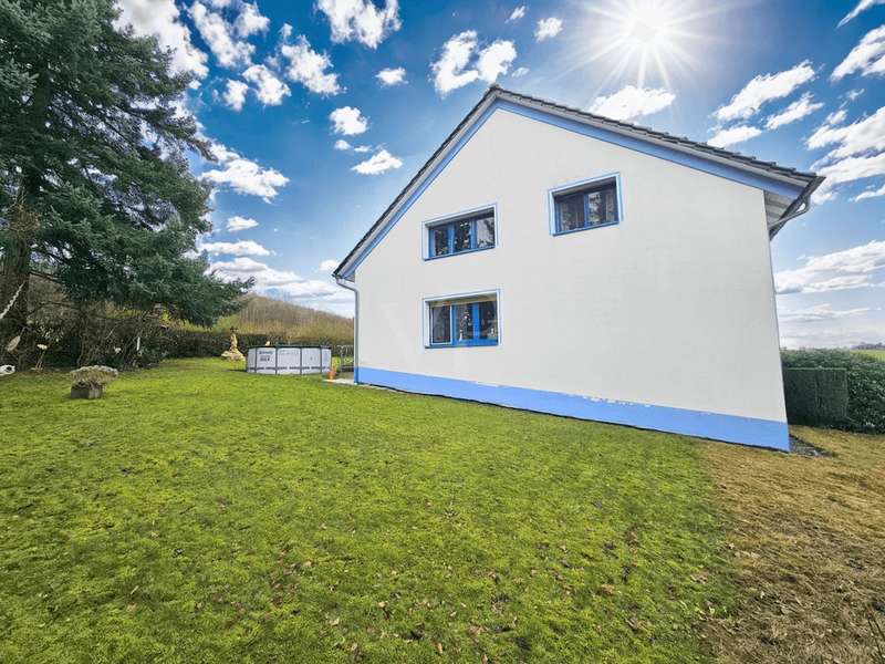 A panorama to fall in love with - and a house full of possibilities: In one of the most beautiful locations in the Hochtaunus region, right on the edge of a field and forest, you can enjoy an unobstructed view over the rolling hills of the region. This versatile property can be used wonderfully as a single unit, but currently offers two spacious residential units, each with over 100 m² of living space (approx. 118 m² first floor apartment and approx. 106 m² top floor apartment) as well as an additional granny apartment in the basement with approx. 66 m² of living space. Perfect for families, multi-generational living or people looking for additional space for guests, a home office or for renting out. It is a unique retreat that combines nature, privacy, flexible usability and tranquillity. The house has been partially renovated in terms of energy efficiency and benefits from a renewed roof from 2007, modernized windows and full thermal insulation, which has contributed to good energy efficiency and increased living comfort. The apartment on the upper floor with modern fitted kitchen, cork floors in concrete look, daylight shower room and friendly living and sleeping area is in a well-kept condition and has a modern standard due to renovation work about 2 years ago. The first floor apartment boasts a particularly spacious living room and direct access to the terrace and garden. All three units are currently let. The current annual rental income (cold) is around €22,000. The basement apartment, the first floor apartment, the stairwell, the heating system and the garages will be modernized after the purchase. Various cellar rooms, a double garage and several parking spaces as well as two garden sheds complete the offer. The property has a spacious, well usable and almost secluded garden, which is beautifully ingrown. Here you can enjoy relaxing hours outdoors. This property combines spacious living with a fantastic location and is ideal for families or investors who value a harmonious living environment in a natural setting. The unobstructed view of the surrounding nature offers a special living experience for nature lovers and those seeking peace and quiet. See for yourself the many possibilities of this property and arrange a viewing.
