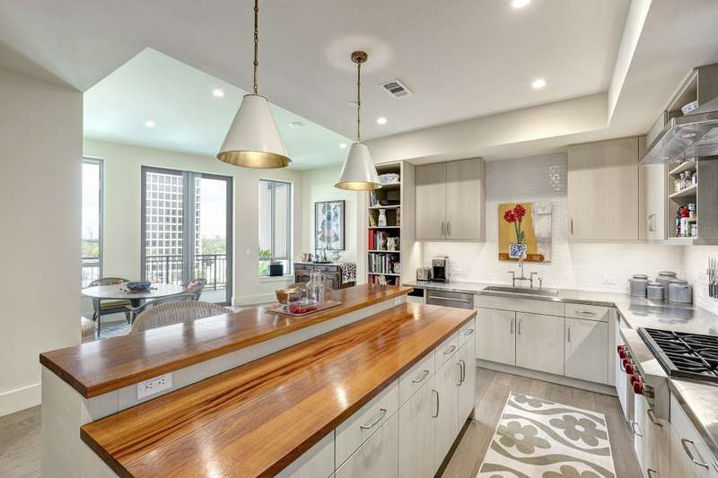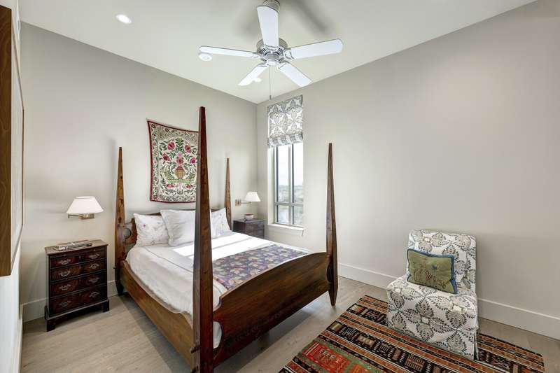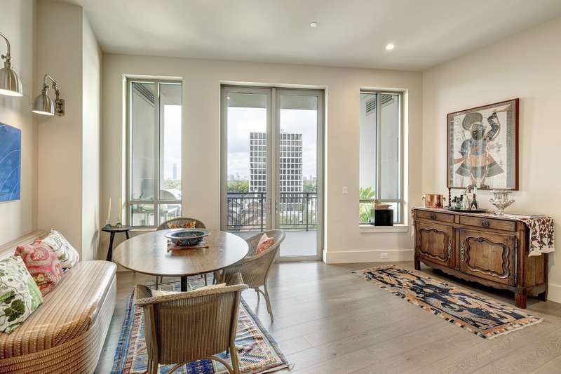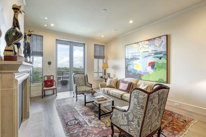 The Revere offers a refined boutique residential experience in the River Oaks area. Unit #705 showcases interior design by Jerry Jeanmard & offers 3 beds, 3.5 baths, high ceilings, expansive windows, Schenck & Co. wood floors & custom Mirth Studio wood tiles. Welcoming entry leads to convenient home office & flows into elegant dining room & inviting living room w/built-ins & fireplace w/custom mantel. Well-appointed kitchen is open to breakfast room & features teak island w/seating & storage, Wolf & Sub-Zero appliances, generous prep space, & walk-in pantry. 2 balconies w/city views extend living/dining outdoors. Serene primary suite w/sitting area, impressive closet & luxurious bath. 2 additional bedrooms w/en-suite baths for family/guests. Enjoy 2 side-by-side parking spaces, private storage unit w/AC, concierge service, valet parking, secure entry, gym, lounge, & pet run. Prime location near Med Center, downtown, universities, acclaimed restaurants & shops. All per Seller.