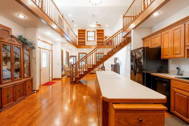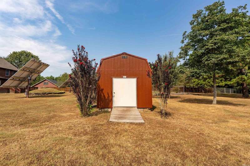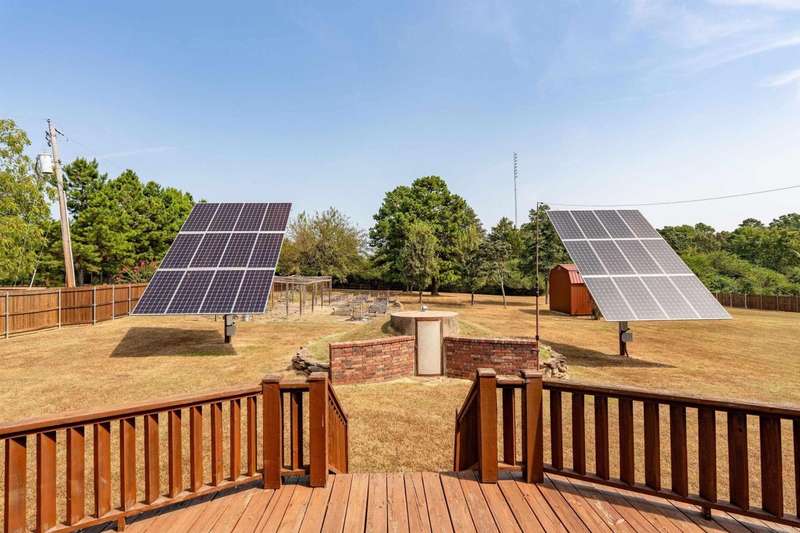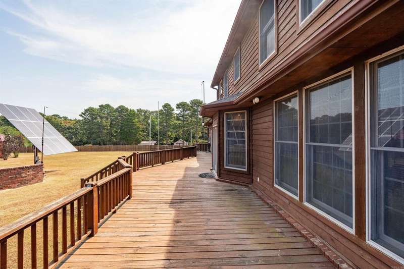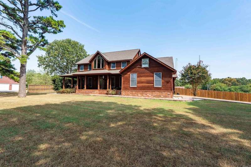 This beautiful home is a must see! Setting on 1.80 acres. Home has a new high resistant roof, it is the best for wind hail. Open floor plan, eat in kitchen with lots of windows. Half bath downstairs. also downstairs has large Master bedroom walk-in closet a large master bath with granite throughout, walk in shower, double vanity, large jacuzzi tub. Home has a large laundry room with lots of storge. Upstairs has 3 bedrooms full bath. Home has an additional 275 sq. feet room that could be used as an office. The home has a pellet stove. Two car garage, large porch on front and back. Property has raised garden beds a storage building and extra parking.