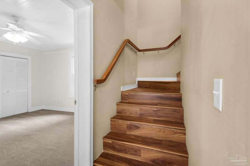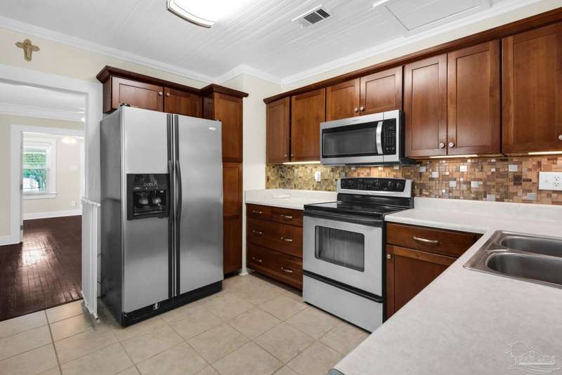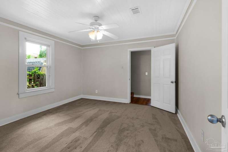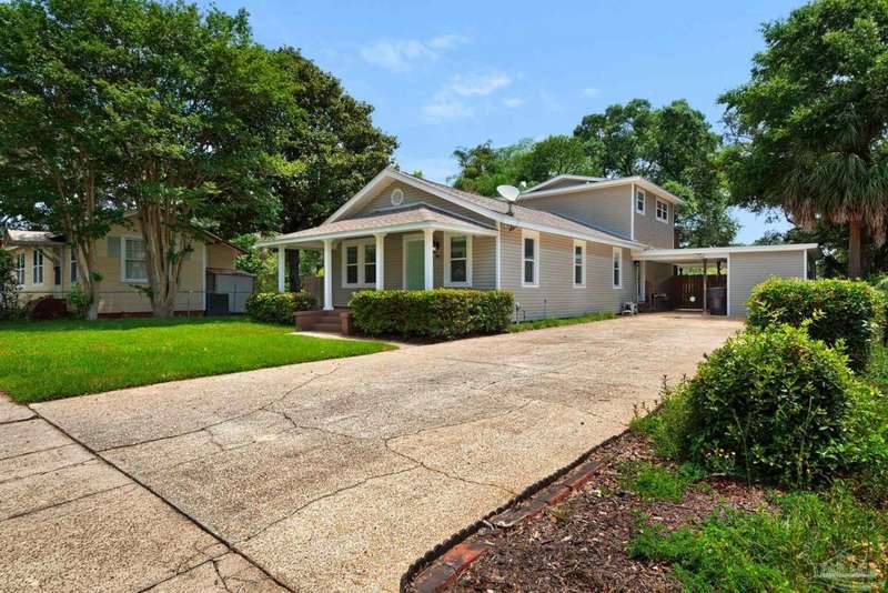 This beautifully updated 3-bedroom, 2-bathroom home offers the perfect blend of historic charm and modern comfort-all just minutes from the heart of downtown Pensacola. Located on the quiet outskirts of downtown, you're just a block or two away from local favorites including a cozy coffee shop, a neighborhood pizza parlor, a seafood restaurant, and an upscale fine dining spot. Plus, you're only about a mile from the bustling Saturday Palafox Market, and the Blue Wahoos Stadium! Built in 1940, this home boasts classic cottage curb appeal with the space and functionality of a more contemporary layout. Inside, you'll find what appear to be original hardwood floors, freshly painted interiors, and an abundance of natural light. The spacious second-floor primary suite features a generous walk-in closet, a large bathroom, and a private deck-perfect for morning stretches or evening unwinding. Additional highlights include a covered carport connected to the house-ideal for rainy day grocery hauls, outdoor storage areas for added convenience, a lush green lawn offering excellent curb appeal, updated windows (2019), new water heater (2024), main roof (2022), and carport/storage roof (2025). If you're looking for character, location, and livability-this is it. Schedule your showing today!