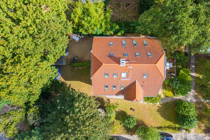 This villa, built in 1909 and purchased in 1913 by publishing bookseller Martin Oldenbourg (1862-1938), is located in the popular villa colony of Neubabelsberg, not far from Lake Griebnitz. With its historic architecture, it blends in with its surroundings of predominantly classic villas. The property has a size of approx. 1260 m². The villa was completely renovated in 2005-2006 and divided into 3 residential units and a commercial unit in the basement and was used in this form until the end. It is possible to merge and return to the original use. The historic façade structure was preserved and the interior brought up to a contemporary standard: new parquet floors, fireplaces, fitted kitchens, daylight bathrooms and central heating. The high ceilings, wooden doors and the predominantly preserved and refurbished wooden windows contribute to the preservation of the original charm of the old building. On the top floor of the house there is an open-plan, modern living unit with large windows and a spacious layout. This villa is ideal for families or for living and working. In addition to good qualities for representative purposes, it also offers maximum flexibility and comfort. There are two parking spaces for vehicles on the property. An outbuilding planned as a garage is used for storage purposes. The fully developed basement offers additional space that can be used commercially or for other purposes, e.g. for hobbies, wellness or as a granny annexe or guest area. A spacious terrace and a balcony, both surrounded by the extensive garden, invite you to spend relaxing moments outdoors. Here you will find plenty of space for social gatherings or quiet hours in the open air. The central yet quiet location of the villa offers excellent connections to the capital city of Berlin as well as close proximity to schools and daycare centers, which are within easy walking distance. Shopping facilities and the Griebnitzsee S-Bahn station are also just a 10-minute walk or bike ride away.