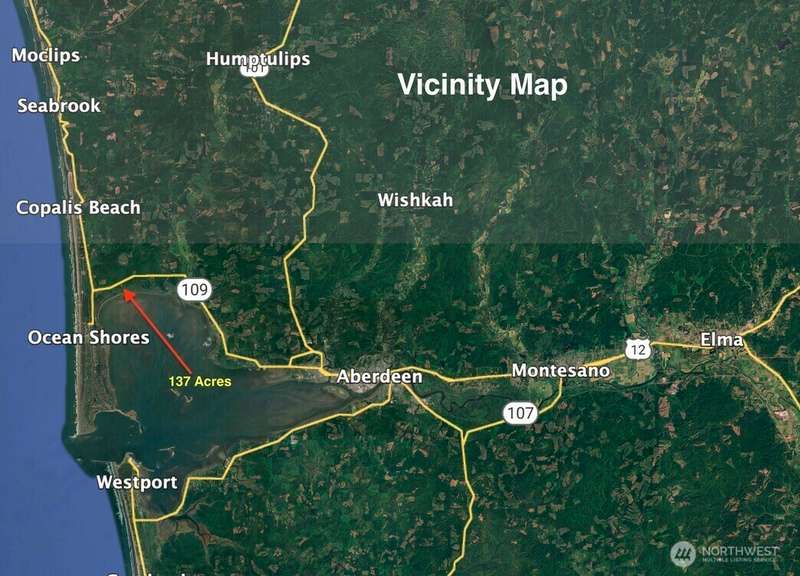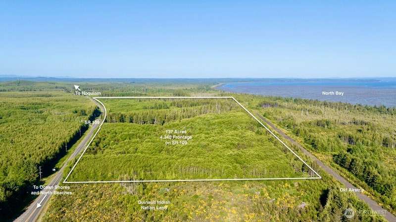 137 acre development parcel on State Road 109 just before turn offs to Ocean Shores or Pacific Beach/Seabrook. Great exposure for traffic coming to the beach with 4,340 feet of frontage on the highway. With nearly 4 million annual visitors to Ocean Shores and the growing popularity of the new resort town of Seabrook, this property is ideally located to take advantage of both. Terrific location on SR 109 just before junction with SR 115. County water system is nearby for possible hook up. Zoned G5 General Development. Use conditional use permit for development. Consider a combination of RV Park, RV/Mini Storage, winery/brewery, residential, tourism development and more. Adjacent property to the West owned by Quinault Indian Nation.