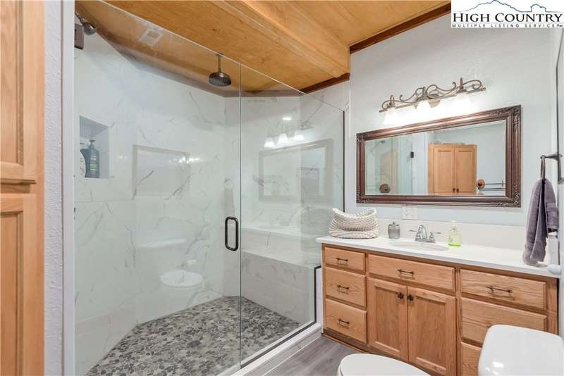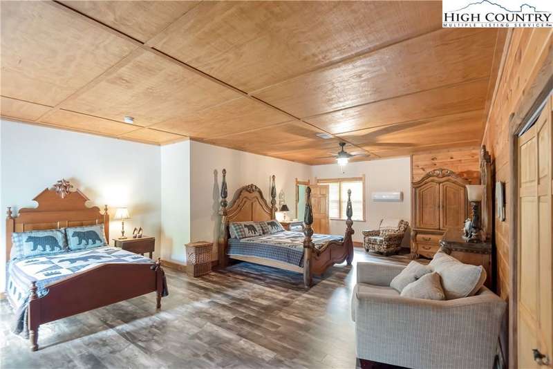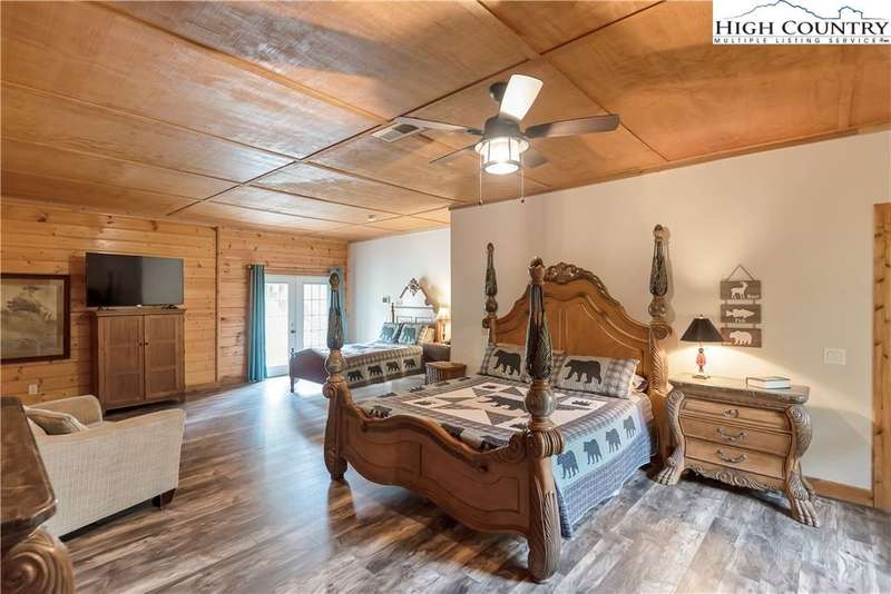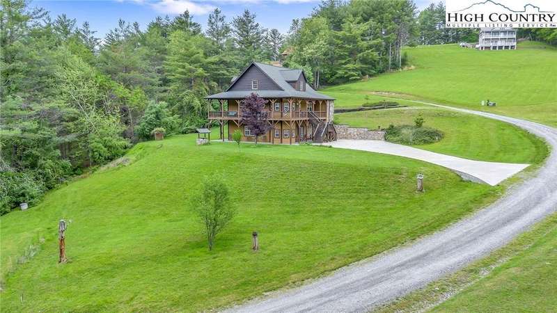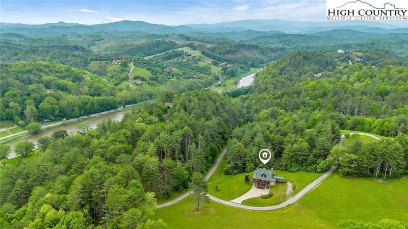 Mountains & River Cabin Vibes?Hot Tub, Game Room, and Adventure Next Door. This turnkey log cabin in River Mountain Estates sits right where the North and South Forks of the New River meet. The river's wide, scenic, and ready for action with a canoe, kayak, and tubing outfitter right next door. Whether you're looking for a mountain getaway, a high-performing vacation rental, or a forever cabin in the woods?this place delivers. Parking? No problem. Pull in at the top for easy main-level entry or park below for direct access to the finished basement. Inside, the main level features a spacious kitchen with stainless steel appliances, granite countertops, tons of cabinetry, and a sunny breakfast nook. A larger dining area off the kitchen is perfect for big family dinners or game nights. The great room boasts a cozy gas fireplace and opens to a massive wraparound porch?ideal for soaking in mountain air and river sounds. The main level primary suite includes a private bath with whirlpool tub and walk-in shower. A half bath and laundry room for guests complete this floor. Head upstairs to a spacious loft?perfect for a card table, TV lounge, or extra sleeping area?and two roomy bedrooms that share a full bathroom. The finished lower level? It's where the fun kicks up a notch. One huge space is set up as an extra sleeping zone with a private bath featuring a massive walk-in shower. There's also a game room with walk-out access to a flat yard?perfect for kids, pets, and yes, your own private hot tub. The community offers a shared New River access point just a minute's drive away?great for fishing, paddling, or simply relaxing riverside. Only 25 minutes to West Jefferson or Sparta. Fully furnished, offered turnkey, and with rental history?this one's ready to rock. Showings are easy, but it won't last long. Don't miss your chance to own a river adventure basecamp with style!