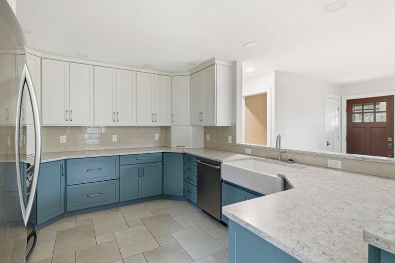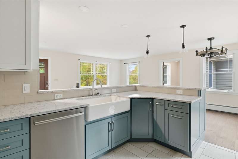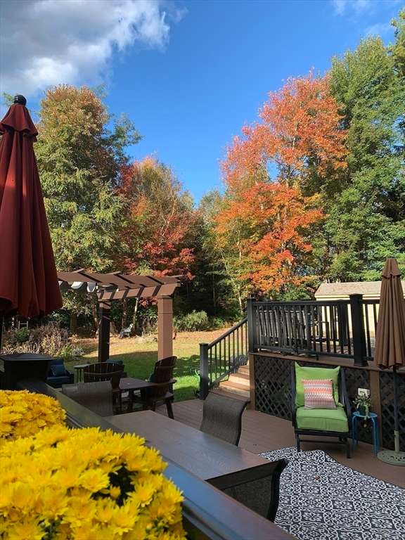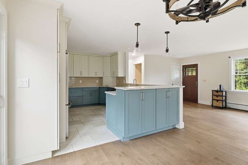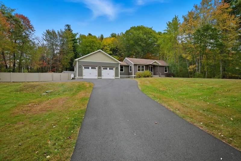 This stunning custom-built ranch in North Belchertown offers exceptional craftsmanship and top-grade materials throughout. The open floor plan creates a spacious and inviting atmosphere, anchored by a newly remodeled kitchen featuring elegant cabinetry, gleaming quartz countertops and propane stove. The main bedroom is a true retreat, complete with custom built-ins with laundry area, while the luxurious main bathroom boasts a marble-tiled, oversized shower enclosed by sleek glass doors. The finished basement expands the living space with a generous family/ game room, plus two additional bedrooms that share a bathroom with a shower. Step outside to enjoy a gorgeous composite deck that seamlessly transitions to a pergola-covered stone patio, centered around a cozy propane firepit. Nestled in a tranquil setting, this home offers the ultimate in privacy and peaceful living. Solar arrays mean, never to pay electric bills again!!! Green Energy at it's finest. Doesn't get any better!