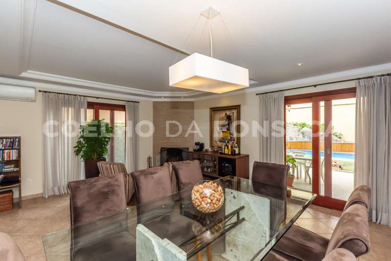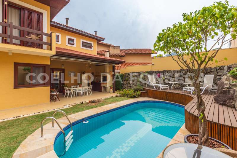 Casa no condomínio ALPHAVILLE 9, com 327m² área construída, 4 dormitório(s), 4 suíte(s), 6 vaga(s), 4 banheiro(s), piscina, escritório, depósito, ar condicionado, dep. de empregados, varanda.