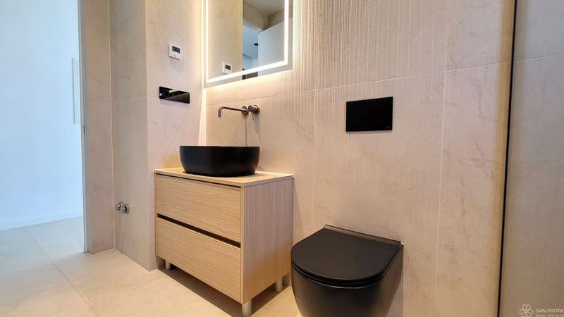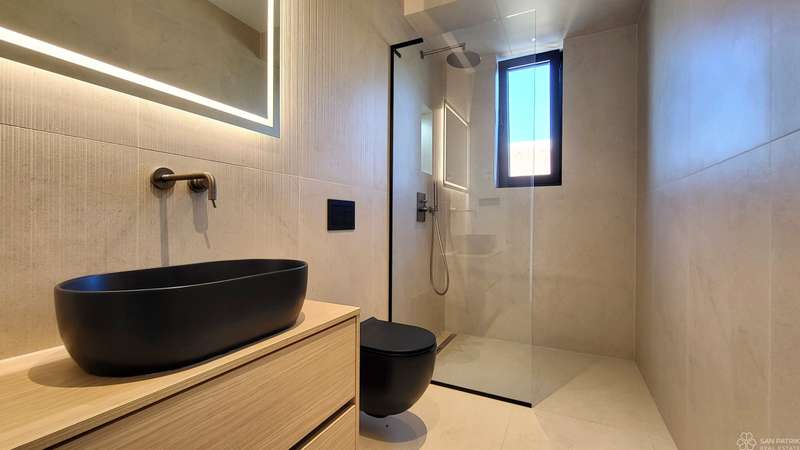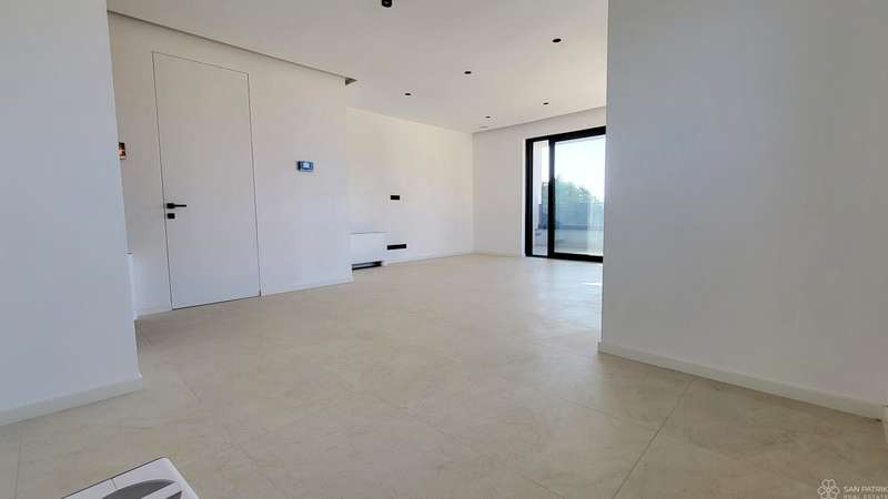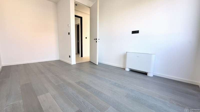 The apartment with a total living area of 55.71 m2 consists of a hallway, living room with kitchen and dining room, one bedroom, bathroom, utility room and a covered balcony of 15.23 m2. In addition, the apartment also has a storage room in the basement of 2.81 m2. Top quality materials were used in the construction and furnishing - underfloor heating with a heat pump, aluminum joinery and air conditioning in all rooms. The apartment is sold unfurnished, leaving you free to choose the furniture and kitchen according to your own taste.