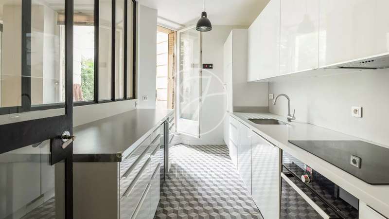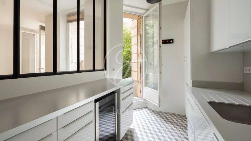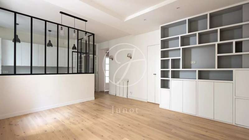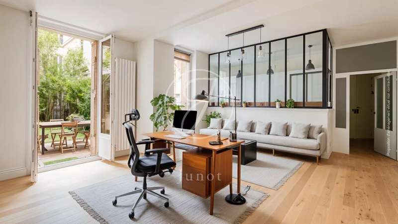 Ideal for professionals, just a stone's throw from Place du Trocadéro. Located on the first floor of a beautiful old secure building with live-in janitor and video surveillance, this refurbished 106.65sqm Carrez apartment offers an exceptional quiet living environment. The living space opens onto a flamboyant 46.52sqm private garden. The apartment comprises an entrance hall with dressing room leading to a living room with semi-open kitchen, three bedrooms, one of which has its own shower room, a bathroom with toilet, separate toilet and plenty of built-in storage space. This rare property in perfect condition combines old-world charm, spaciousness, calm and greenery. A cellar completes the offer. Possibility of renting a large parking space nearby.