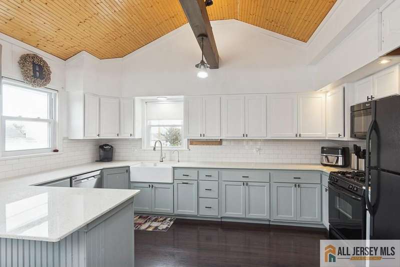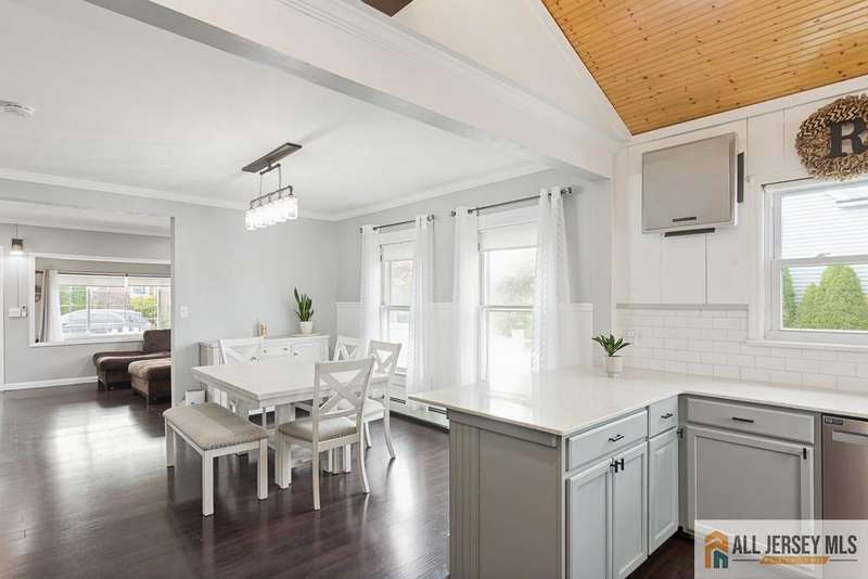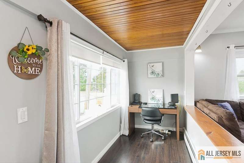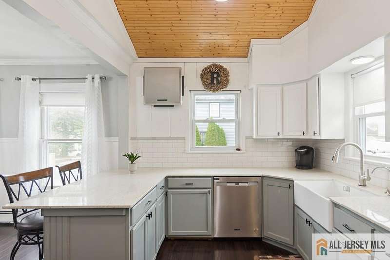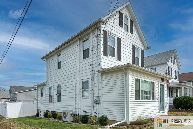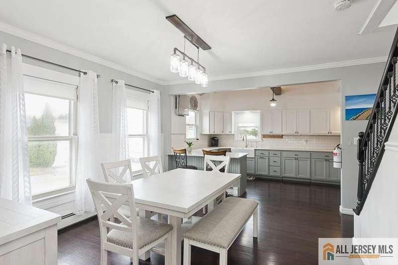 Step inside to find an inviting open floor plan with gleaming hardwood floors flowing throughout. The gourmet kitchen impresses with a vaulted paneled ceiling accented by a designer beam, breakfast bar seating, abundant cabinetry, and sleek black appliances. A formal dining room offers the perfect setting for hosting gatherings. The versatile enclosed sunroom, finished with paneled ceilings, can easily serve as a third bedroom. Upstairs, the primary suite includes a private half bath and access to a wlk-up attic with paneled ceilings, offering excellent storage or expansion potential. Two additional bedrooms, plus a bonus office (currently used as a wlk-in closet), provide flexibility for today's lifestyle. Modern upgrades include multi-zone central air conditioning, an instant hot water tank, and a tankless boilerbringing efficiency and year-round comfort. The 2nd floor windows have been replaced. Step outside to a fully PVC-fenced yard, complete wi/deck patios designed for entertaining. The side entry offers convenience with an awning and built-in doggie door, while a detached two-car garage completes this exceptional property.