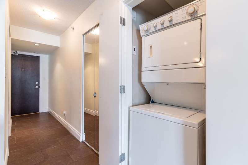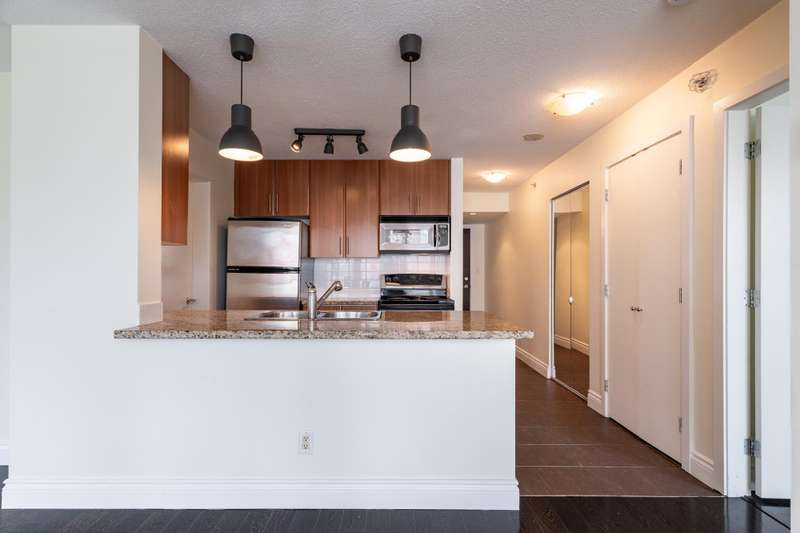 Airbnb/Short Term Rental Friendly-West Facing one bedroom & den. Exceptional opportunity in a building that permits Airbnb and short term rentals. Bright open layout with city and mountain views, private balcony and a versatile den/storage space. Resort style amenities include pool, hot tub, fitness center, sauna, media/meeting rooms, bike storage and spacious parking stall. Prime downtown location and steps to Rogers Arena, Costco and Skytrain.