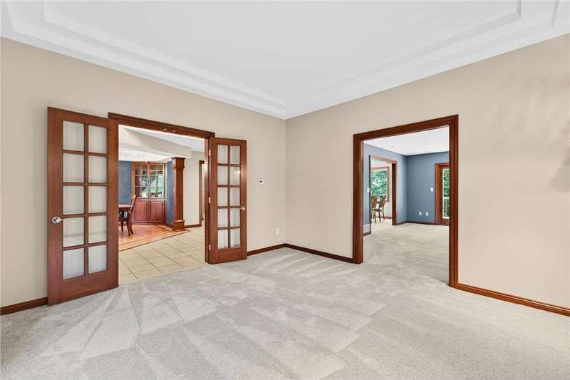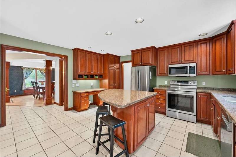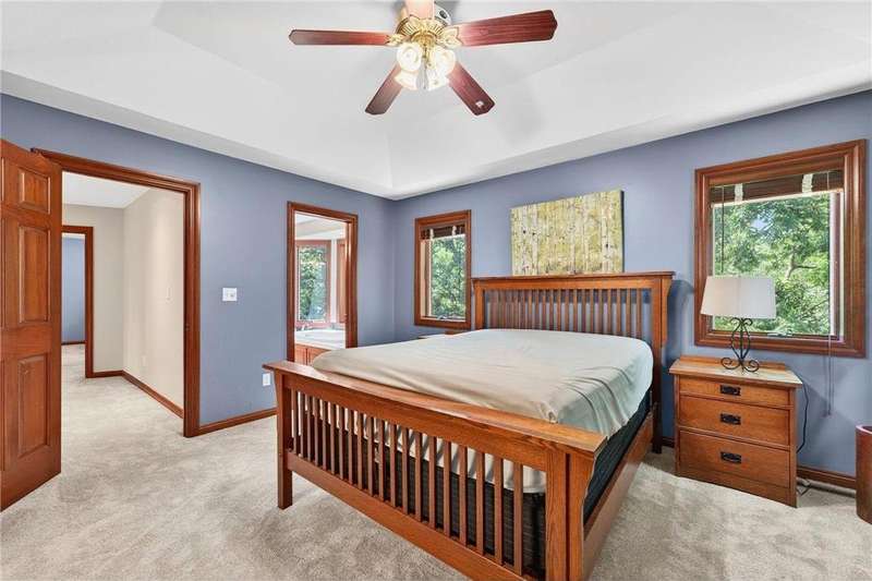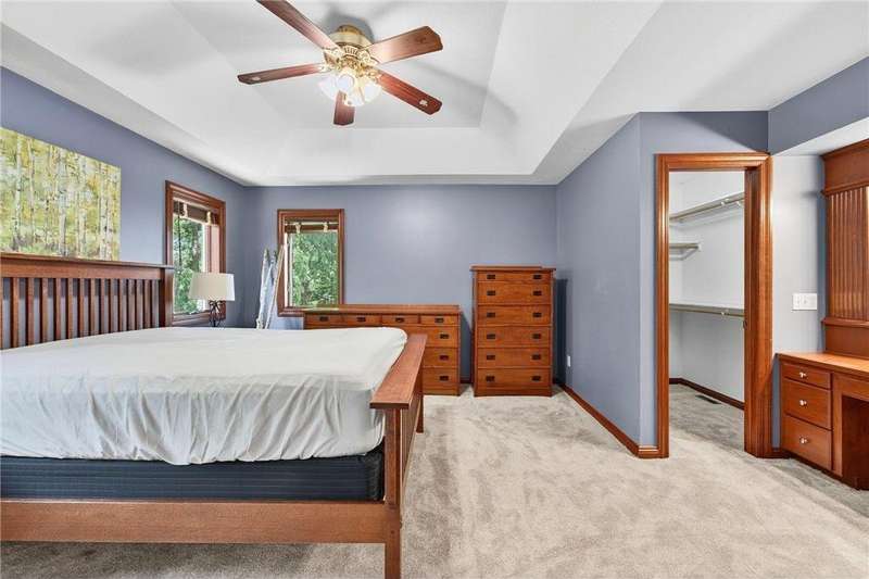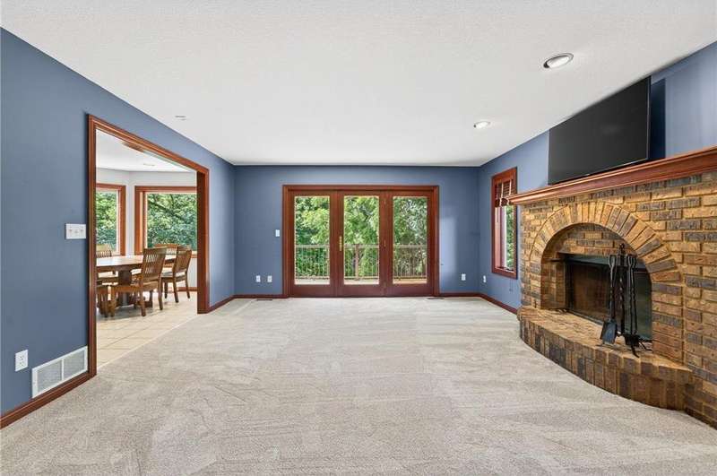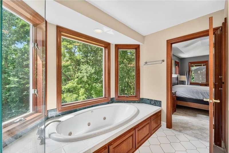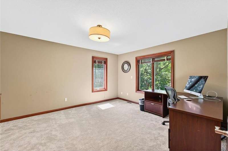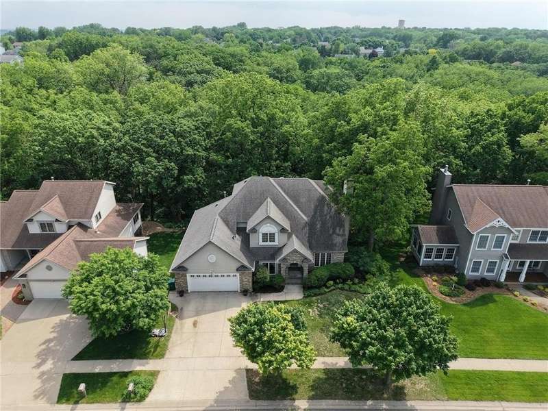 Stunning 5-Bedroom, 4-Bath Two-Story Home on Private Wooded Lot. Nearly 4000 sq ft across three levels thoughtfully designed living space. Main Floor: Open floor plan with gourmet kitchen, living room with real fireplace, main-floor bedroom, dedicated office/den, and laundry room. Deck overlooks wooded backyard retreat. Second Floor: Three generously sized bedrooms including master suite with en-suite bathroom. Additional bedrooms share Jack & Jill bathroom. Finished Walkout Basement: Fifth bedroom, expansive family room, full bathroom and abundant storage. Walkout access to custom patio creates seamless indoor-outdoor living. Prime Location: Easy walking distance to Century High School with pedestrian bridge over Circle Drive. Close to Quarry Hill Park and quick downtown commute. Perfect combination of private wooded serenity and convenient suburban amenities.