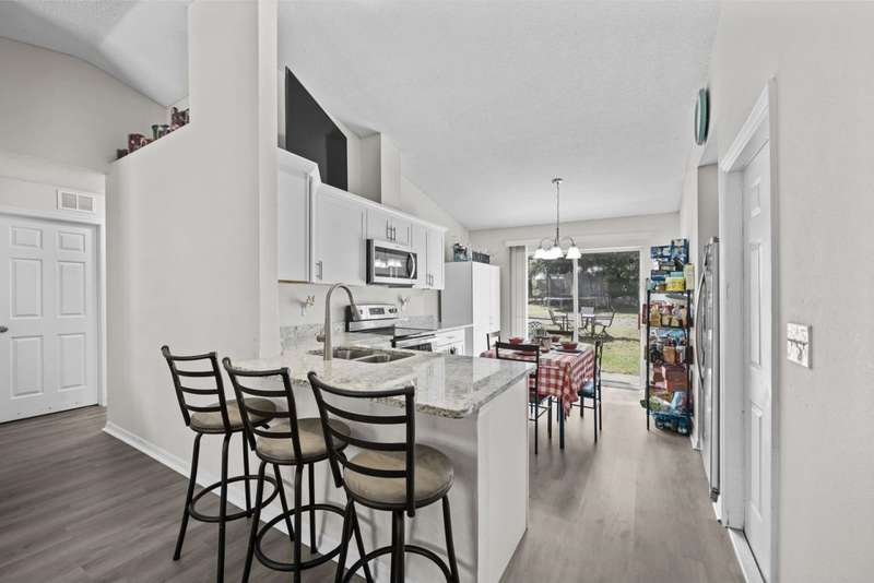 Charming Block Home in the heart of Palatka near the St. Johns River. Upon entering you are greeted by a spacious open living area that creates a warm and welcoming gathering space. This opens to a large bright eat-in kitchen with breakfast bar. Kitchen has sliding doors which lead to a large backyard, great for cookouts and entertaining. There is definitely room for a pool and your own outdoor oasis. New roof in 2022 and No HOA.
