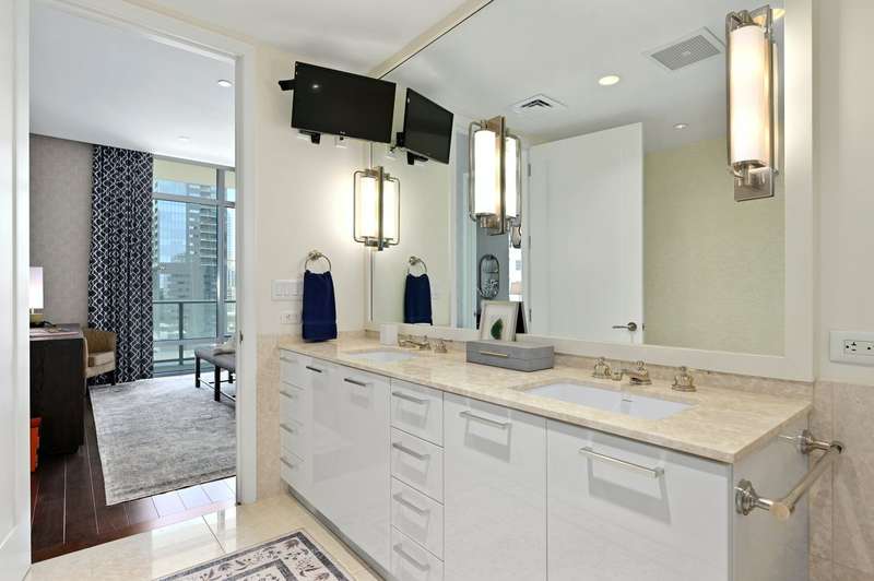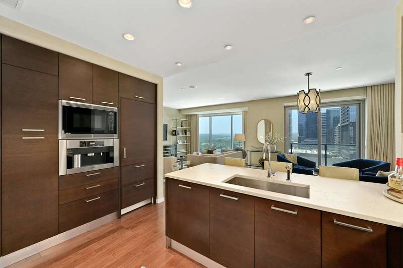 The Austonian is the premier building in downtown Austin with 40,000 sq ft of amenities for only approximately 174 units - one of the best ratios in the city for privacy and exclusivity. Luxuries include valet parking, a 56th-floor fitness center and a recently renovated and meticulously maintained lobby and 10th-floor common areas comprising an expansive pool & hot tub deck, BBQ areas, a fire pit, a spa room for private treatments, guest suites, catering kitchen, indoor/outdoor social areas, a dog park, dog grooming stations, a theater, as well as 24-hour concierge level service and security. Climate-controlled wine storage is also available. The Austonian is perfectly located in the center of downtown with quick access to the Capital, restaurants, businesses, entertainment, Equinox/Barry’s/Central Crossfit and other athletic facilities, trendy South Congress, Soho House, Zilker Park, Auditorium Shores, Moody Center, UT Austin, City Hall, SXSW & ACL activities, the famous “bat bridge” and the popular Town Lake trail network. The Austonian is also within walking distance to many of the “as planned” light rail system stops around downtown Austin. It has easy access to major roadways for a simple commute to the Austin Bergstrom airport and other parts of the city. 24-Hour Advance Showing Notice.