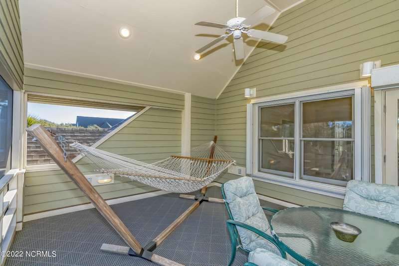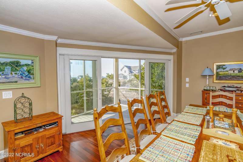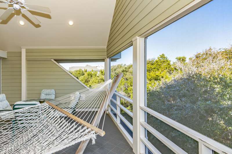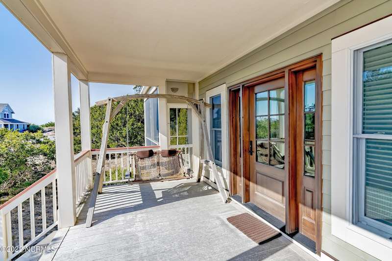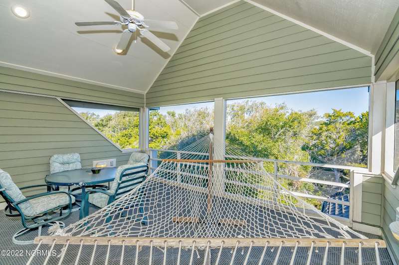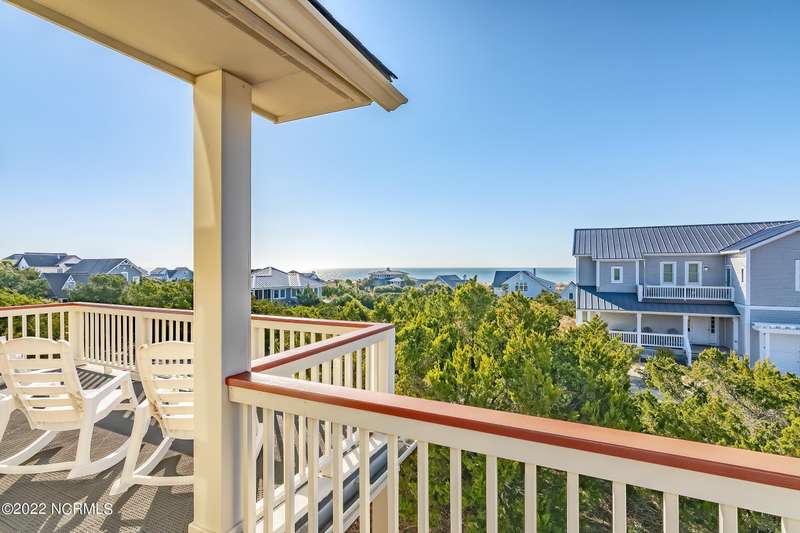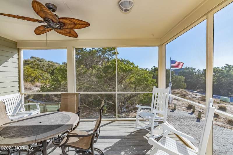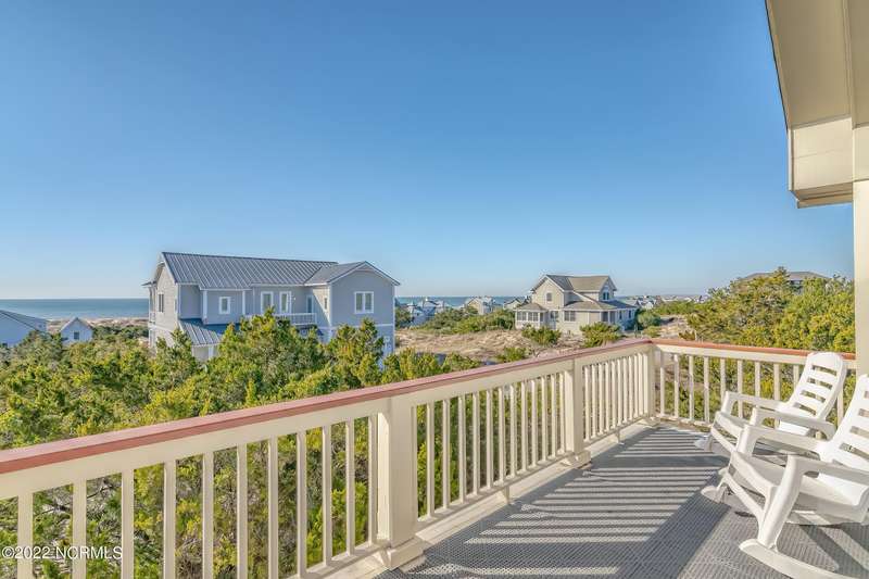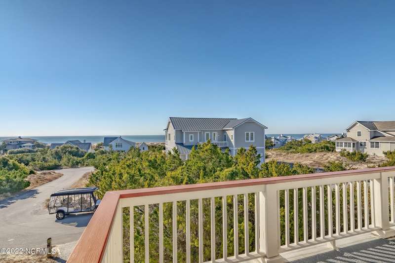 Perched on Bald Head's high dunes, enjoying Atlantic seascapes, this roomy six-bedroom, four-bath home is ideal for families. Open the striking mahogany front door to this retreat's open floor plan featuring Brazilian cherry hardwoods. To your left, an oversize dining space is furnished with a table for ten and opens onto a front screen porch. The adjacent kitchen's breakfast bar offers four more seats and egress to the sunny, screened dining porch. Relish alfresco feasting while savoring meals and water vistas. The gourmet kitchen boasts stunning granite counters, bead board cabinets, stainless appliances and wine storage. Nearby, the spacious living area is anchored by a wood-burning fireplace and begs for large gatherings. Down a short hallway, a natural-light-filled King Master suite bestows ocean views when you awake. Step through your private access to the front screened porch or luxuriate in the pampering ensuite with a dual granite vanity, sunken garden tub and oversize tiled shower. Another hallway leads to a sunny corner Queen bedroom with dune wildlife perspectives and private access to the hall Jack-and-Jill full bath. Tucked farther down a hall and up a few steps, another very private King bedroom, with a vaulted ceiling, also uses the hall bath. In addition, this level houses the laundry and access to the two-cart garage with a six- and a four-passenger cart. Upstairs, the bright Grand King Master-with its large flat screen, sofa, game table and ensuite-proffers South Beach panoramas inside and on its generous sun deck. This floor also provides two sunlit ocean-side Queen bedrooms, each with amazing views and glass doors to the sundeck. They share the hall bath. The landing on this floor tenders built-ins and entrée to a generous, serene back screened porch-furnished with a hammock and another dining table. Nap away the afternoon or revel in your own quiet time. Full equity membership to the BHI Club .
