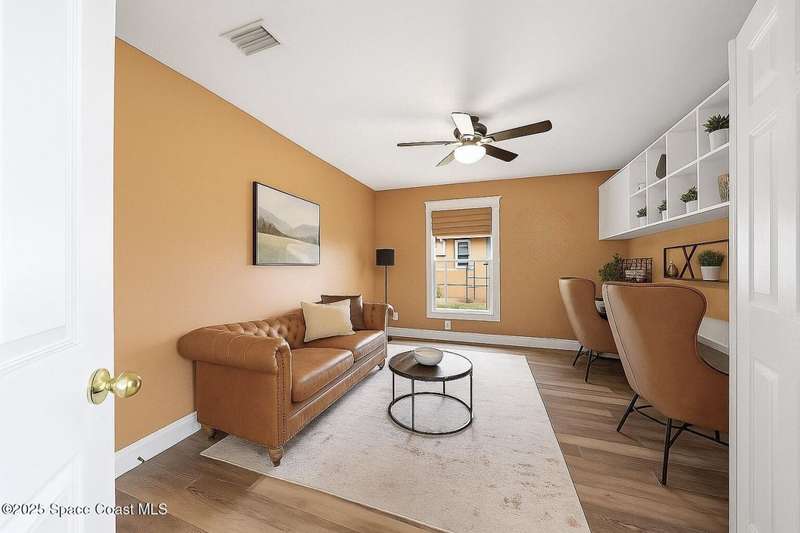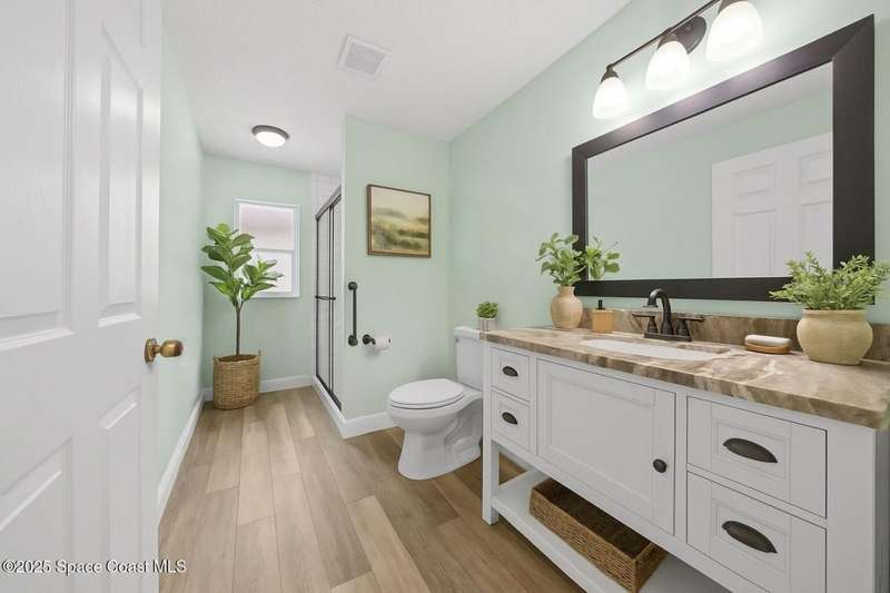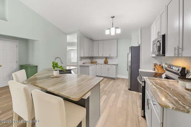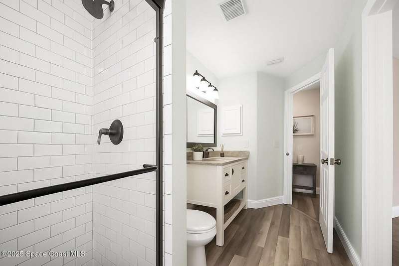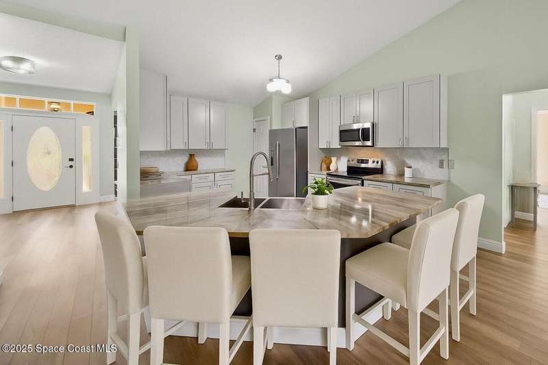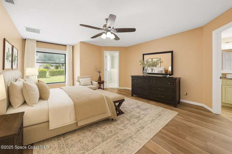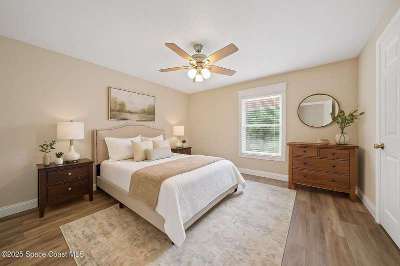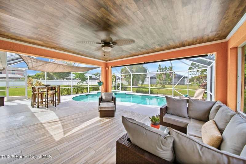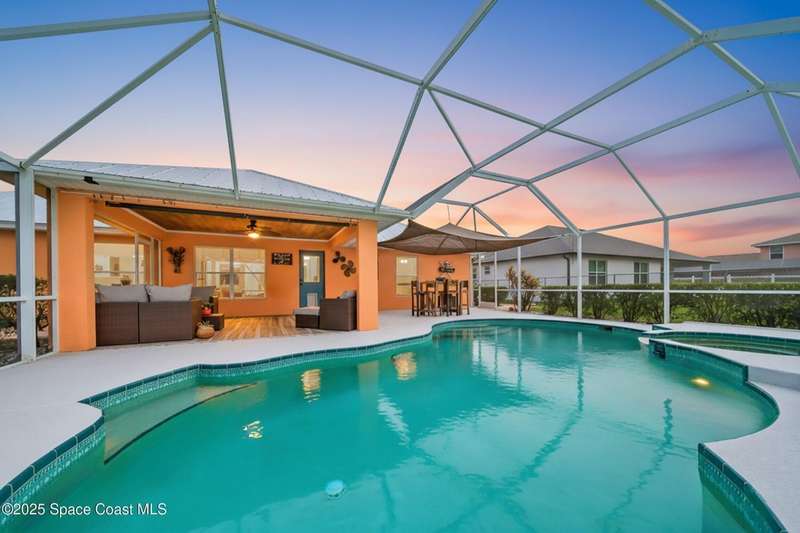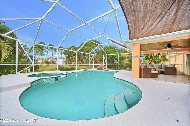 Nestled on a quiet cul-de-sac, this beautifully maintained 4-bedroom, 3-bathroom residence perfectly blends comfort, functionality, and charm. From the moment you arrive, the inviting screened front porch sets the tone for relaxation and warmth.Step inside to discover a thoughtfully designed layout featuring a separate living and dining room, a spacious family room, and a fully remodeled kitchen ? ideal for both everyday living and entertaining. The primary suite offers a rare luxury ? his-and-hers bathrooms, designed for convenience and privacy. Throughout the home, luxury vinyl flooring delivers both style and durability, while elegant accent trim work highlights the homes craftsmanship.Step outside to a screened-in saltwater pool with a heated spa and covered patio, perfect for year-round enjoyment. An underground propane tank efficiently powers the spa and can also heat the pool when desired. This home offers peace of mind with a brand-new A/C (2025), a durable metal roof installed in 2022, and a new water heater (2022), ensuring comfort, efficiency, and longevity for years to come. Situated on an oversized, fully fenced lot, the property provides ample room for outdoor living. The extended driveway offers abundant parking, including space for a boat or recreational toys.(Note: Some photos have been virtually staged to showcase design inspiration and spatial possibilities - helping you imagine how this beautiful home can be styled to suit your taste.)