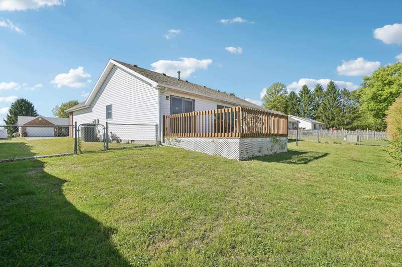 Charming Country Residence Featuring 3 Bedrooms, 2 Full Bathrooms and spacious 2 car garage. This inviting home offers a spacious living area with an open-concept design, perfect for comfortable living and entertaining. The well-appointed kitchen boasts ample cabinet space, a generous pantry, and a convenient breakfast bar, seamlessly flowing into the combined living and dining areas that create an expansive, welcoming atmosphere. A cozy gas fireplace adds warmth and ambiance for those cool fall evenings. The generous primary suite includes a luxurious walk-in shower and a large walk-in closet, providing a private retreat. Two additional bedrooms are spacious and versatile, suitable for family, guests, or a home office. Exterior highlights include a fenced yard with a secure gate, along with a sizable deck ideal for outdoor gatherings, relaxation, or enjoying the peaceful country setting. This property combines practical features with charming details, making it a wonderful place to call home.