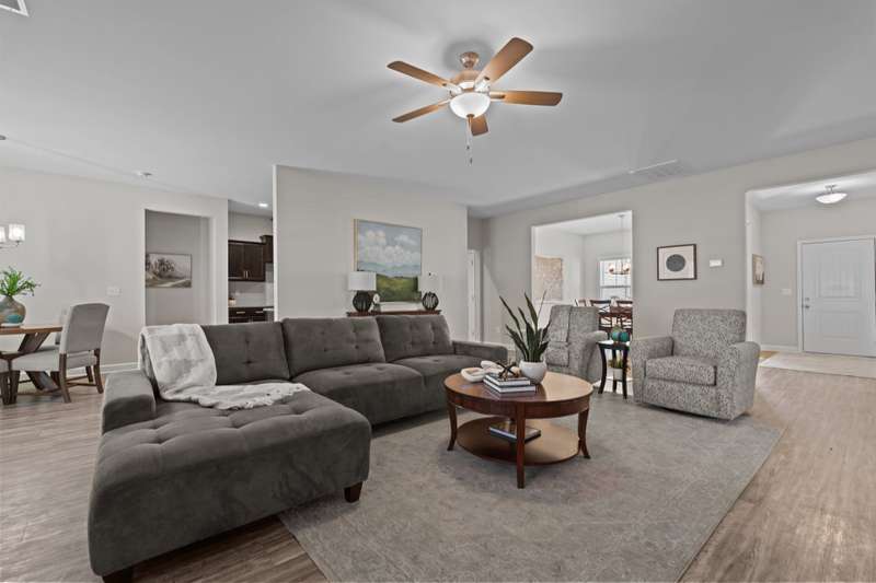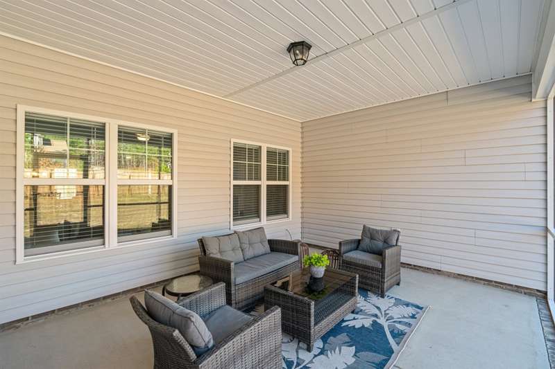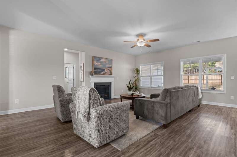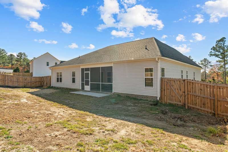 ONE STORY living priced below recent appraisal !This stunning better-than-new ranch is ready for you to move right in! Step onto the charming front porch and feel instantly at home. Inside, a versatile office/flex space at the front of the house is perfect for remote work or a creative retreat. The open-concept family room invites relaxation, featuring an electric fireplace and ceiling fan. The modern kitchen is a chef's dream with granite countertops, a sleek tile backsplash, stainless steel appliances, and a separate pantry. The private primary suite at the rear of the home includes a cozy sitting area, a luxurious bath, and a must-see walk-in closet. Generously sized secondary bedrooms are thoughtfully positioned on the opposite side of the house, offering privacy and comfort. The laundry room comes equipped with ample upper cabinetry for convenient storage.Step outside to enjoy the screened patio, fenced backyard, and the practicality of a two-car garage. Plus, with NO carpet throughout the home, upkeep is a breeze. This home truly has it all?don't miss it!