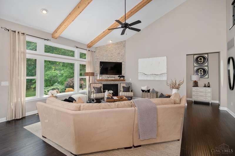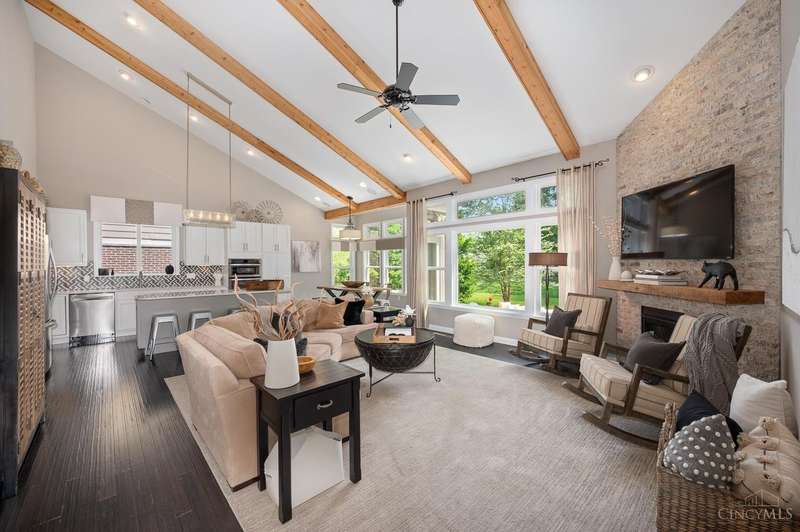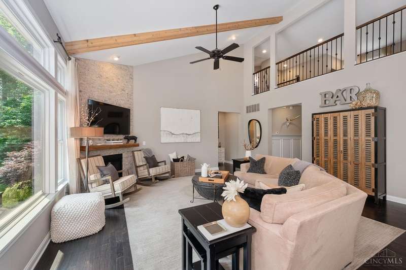 Impeccable home in Butterworth Glen,minutes to Historic downtown Loveland + bike trail,tons of natural light,3 bedrooms,2.5 baths,1st floor primary bedroom,1st floor study + large 2nd floor loft,Turner model by Fischer Homes - loaded with upgrades,2847 sq ft,wood flooring,natural beam ceilings + floor to ceiling stone fireplace in LR,gorgeous white kitchen with island-SS appliances-pantry-quartz-custom tile,Judge's paneling,custom window treatments,custom lighting,700 sq ft stone paver patio,private level yard backs to woods,0.37 acre culdesac lot,unfinished LL,HOA $680/year,Sonos speaker system,original owners,pristine condition,Little Miami schools,neighborhood walking trails + stocked ponds,nothing to do! Open House October 11th Saturday 12-2pm and October 12th Sunday 1-3pm. See video attached.