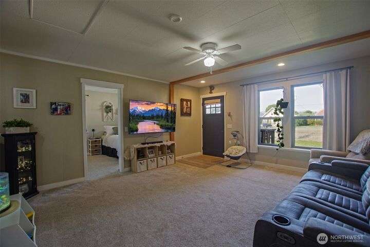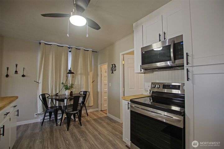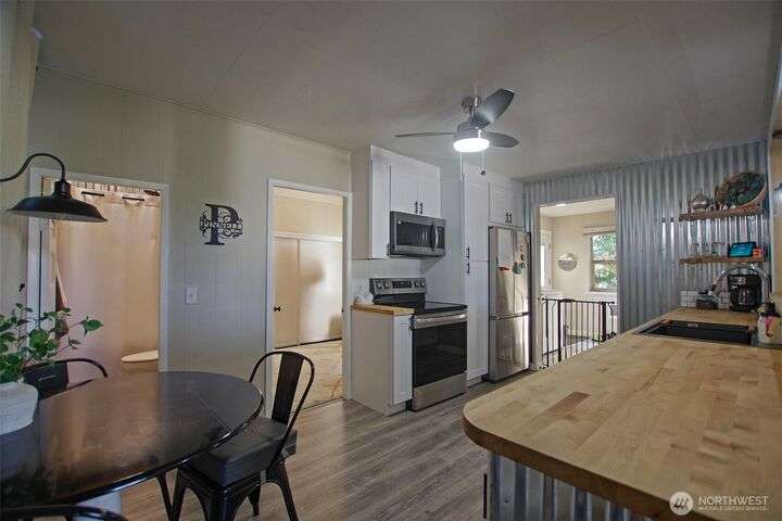 This updated 2-bedroom, 1.5-bathroom home offers comfort, functionality, and recent improvements throughout. The open floor plan showcases a light-filled living area, a modern kitchen, and access to usable attic space for storage or future potential. Recent upgrades completed in 2022 include: New mini split heating/cooling system, roof, electrical panel, appliances, siding, and carpet. The property also features a fully fenced yard with established cherry and plum trees, and a separate privacy fence perfect for enjoying summer evenings. Located in a desirable area with convenient access to schools, shopping, and amenities, this move-in ready home combines modern efficiency with classic charm. Why not call this place HOME!
