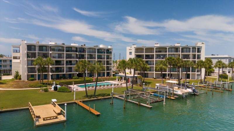 Under contract-accepting backup offers. Beautifully remodeled waterfront condo with deeded BOAT SLIP! Welcome to Blind Pass Lagoons, your hidden paradise conveniently located within 5-minute walk to Treasure Island and Sunset Beach. This TWO-bedroom, TWO bath condo lives large with its spacious floorplan. The primary suite has lovely water views, a walk-in closet and a beautiful en-suite master bath with a tiled shower and large vanity with dual sinks. The open floorplan allows privacy between the bedrooms and a large open space to relax and watch the dolphins play! Enjoy the great Florida weather boating, at the sparkling heated pool overlooking the intracoastal waterway, or spend a day at the fishing pier. The large guest bedroom, waterfront balcony, interior laundry, and beautiful updates make this condo a great second home, vacation rental, or your full-time residence. Conveniently located near beaches, shopping, restaurants, and easy access to I-275. This is a BOATER’S DREAM with easy access to the Gulf of Mexico and miles of intracoastal water to explore. New roof, HVAC and appliances (2021) Milestone complete, repairs done and assessments paid.
