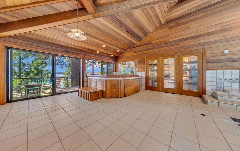 Stunning Lakefront Estate in Lake Almanor Country Club! This exceptional 5,133 sq ft lakefront compound offers 6 bedrooms, 5.5 bathrooms, and a rare combination of luxury, space, and year-round recreation?perfect for large families or multi-generational living. Step into the grand living room with vaulted wood ceilings, a dramatic floor-to-ceiling natural stone fireplace, custom lighting, and breathtaking views of Lake Almanor and Mt. Lassen. The oversized exhibition kitchen is a chefs dream?featuring a central prep island, breakfast bar with wooden bench seating, extensive cabinetry with pull-outs, tiled surfaces, a large attached pantry, and an adjacent dining area with built-in buffet. French doors lead to the ultimate amenity: a fully enclosed indoor pool and spa area! The 37-foot heated lap pool and spacious hot tub are framed by wood walls and ceilings, lots of natural light through multiple skylights, plus a dedicated full bathroom for convenience! The spacious primary suite offers hardwood floors, a built-in entertainment center, private hot tub, dual vanities, walk-in closet, in-suite laundry, and a dedicated home office. The lower levels of the home feature a large game room with a secondary office space/reading area featuring spectacular views. Three guest bedrooms and a full bath on the mid-level, and two additional bedrooms plus another full bath on the lowest level. Enjoy seamless outdoor living with multiple access points to the lower lakeview deck leading to a gently sloped, improved path down to the deepwater shoreline?ready for your custom dock and buoys. Additional highlights include a three-car garage, flat front yard with lush lawn, ample parking, gorgeous vertical straight grain redwood siding, central vacuum, solar paneling and tank-less water heater. The adjacent lake front parcel is also for sale! This is a truly unique opportunity to own a legacy lake home where comfort meets adventure in the heart of the Lake Almanor Country Club!