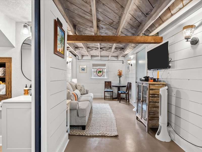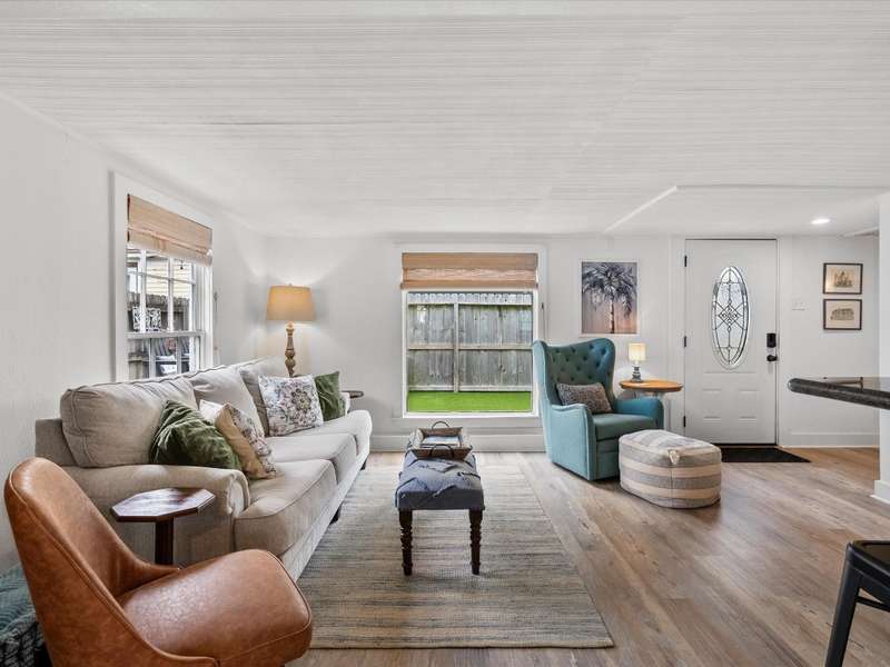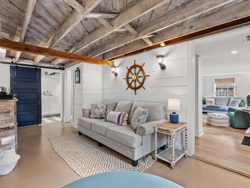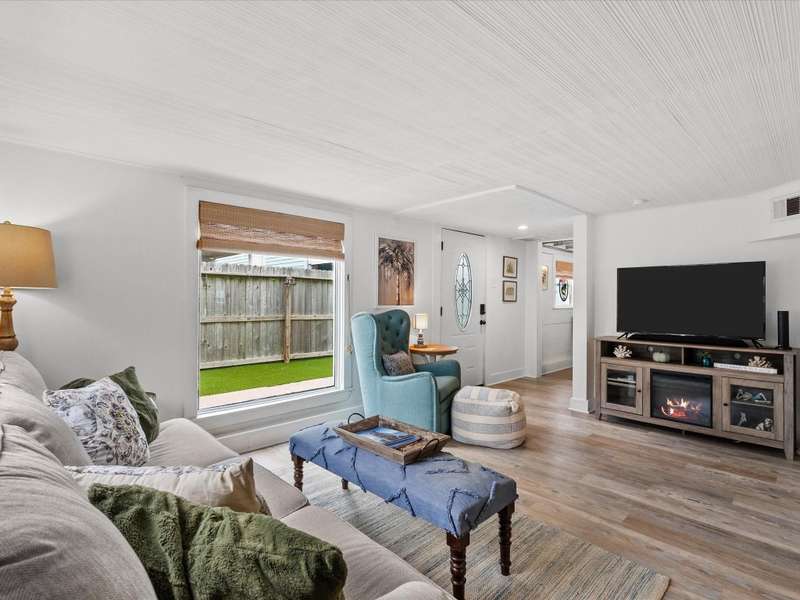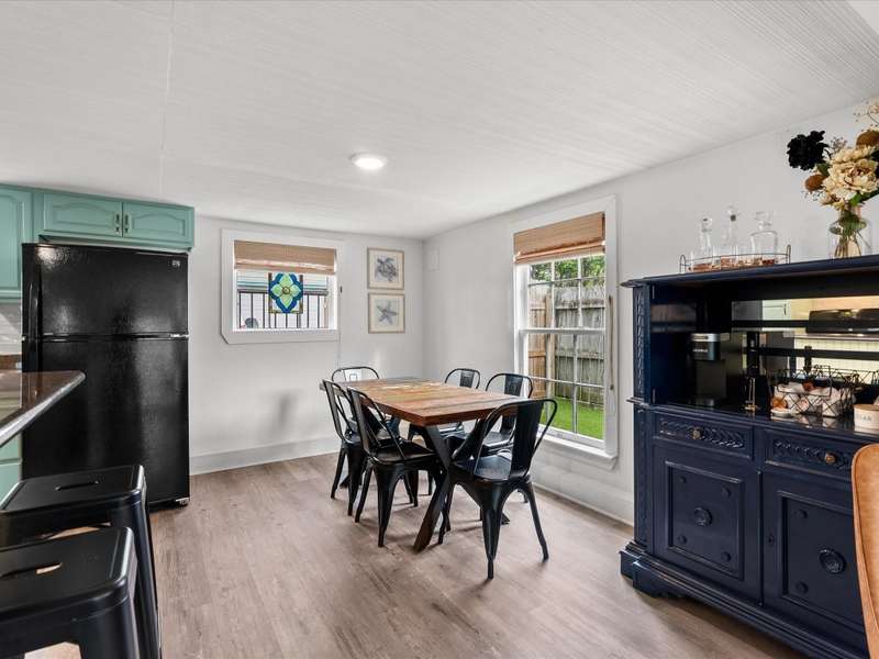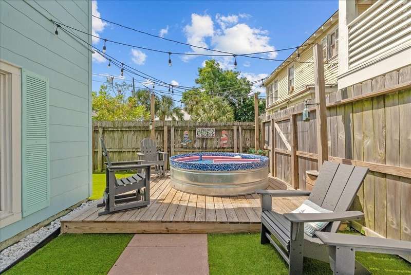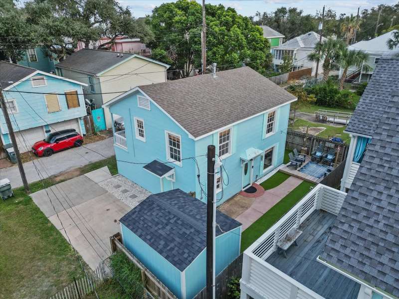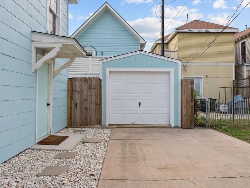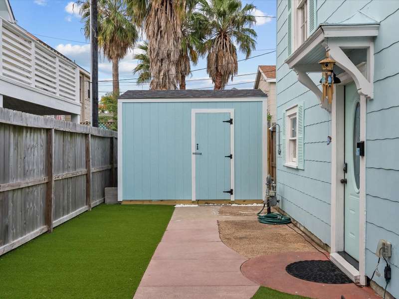Discover one of Galveston’s hidden gem, located in the Silk Stocking Historic District and a short two-minute stroll to Pleasure Pier. This beautifully updated 3-bedroom, 2-bath home blends modern comforts with historic charm. Recent upgrades include a FLEXIBLE BONUS ROOM with full bathroom, and NEWLY BUILT LAUNDRY AREA! Enjoy the COWBOY POOL WITH PUMP in your PRIVATE COURTYARD equipped with BRAND NEW ARTIFICIAL TURF, a fresh deck, and NEW FENCE. The main level features DURABLE LVP FLOORING and RECONFIGURED PANTRY, while the NEWLY CONSTRUCTED GARAGE/STORAGE SHED adds extra convenience. Enjoy the timeless appeal of RESTORED SHIPLAP throughout with updated stylish fixtures, a ROCK WALK-WAY, and a uniquely accented bathroom floor upstairs! Enjoy the best of Galveston in this thoughtfully refreshed retreat just SECONDS FROM THE PLEASURE PIER and FRIDGE INCLUDED!