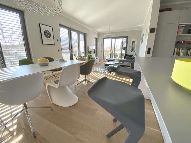 Nothing is left to be desired here... You don't want to do without the spaciousness and privacy of a detached house - this exclusive penthouse combines modern living with high-quality furnishings and offers a living space of around 195 m² and impresses with a well thought-out room layout with 5.5 rooms, including three bedrooms, a modern bathroom, guest WC and a master bathroom. This exceptional penthouse is situated in an exclusive and quiet location surrounded by beautiful trees. A very well-kept neighborhood and a breathtaking view await you here. This location combines peaceful surroundings and proximity to the city, ideal for those who appreciate city life and nature in equal measure. This exclusive penthouse combines modern living with high-quality furnishings and a light-flooded ambience and quality of life in one of the most sought-after residential areas. The open-plan living and dining area with direct access to the roof terrace creates a seamless transition between indoor and outdoor areas - ideal for relaxing hours or sociable evenings. The roof terrace invites you to relax outdoors and offers a wonderful view of the Lubentius church. Here you can enjoy sunny hours or end the day relaxing in the open air - a special place for peace, enjoyment and quality of life. An absolute highlight is the property's own air-to-water heat pump, which ensures a sustainable and efficient energy supply, supplemented by its own photovoltaic system, which significantly reduces energy costs. The property is also designed to be barrier-free, with an elevator that goes directly to the apartment, offering a special level of comfort. An additional cellar room in the underground garage offers further storage space. The underground garage itself makes parking easier and ensures safety and convenience for your fleet of vehicles. A personal viewing appointment will allow you to experience the benefits of this property and find out more about the structural and technical details. Make a future-proof decision for you and your family. We look forward to meeting you.