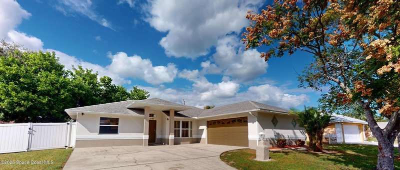 A Must See Beautiful and Stately, Semi-Custom Concrete Block Home In Much Sought After Unit 50! Curb Appeal To The Max Enhanced By A Dramatic Entry Porch, Long Driveway, Side-Entry Garage and Mature Landscaping. Home Features Raised-Vaulted Ceilings Throughout, Skylight/Plant Shelf in Living Room, Split Bedrooms, Bay Windows In Dining Room and Breakfast Nook, Ceramic Tile in Wet Areas, Laminate In Living Areas and Carpeting in Bedrooms. Kitchen Features Ultra High-End Stainless Steel Appliances: ''Cafe'' Brand Induction Range and Convection Oven (WiFi Equipped), ''Cafe'' Refrigerator and Bosch Dishwasher. Interior Laundry Room With Washer and Dryer Included. The Exterior Boasts Glass Block Accents, Perimeter Gutters, Large Trussed Concrete Block Screened Porch (10'x20'), Recent Paint, and Vinyl/Wood Fenced Rear & Side Yards. Updates Include: Hip Roof (2016), Rheem A/C System (2013) 50 Gallon Water Heater (2024), and Fresh Interior Paint. Home Is On City Water And There Is No HOA!!!
