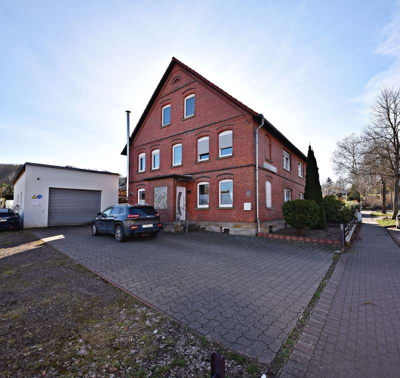 A well-kept detached house in Rinteln-Möllenbeck is for sale. The property offers a living space of approx. 188 m², which extends over a plot of approx. 800 m². The house impresses with its spacious layout and modern furnishings, making it an ideal home for a family or a couple. The building was extensively renovated in 2008. The windows were converted to modern plastic windows with triple insulating glazing in 2015, which provide excellent heat and sound insulation. A new gas heating system from 2024 ensures efficient and environmentally friendly heating of the house. The layout of the house comprises five rooms, kitchen, 2 bathrooms, which are ideal for individual use. The fireplace in the living room creates a cozy atmosphere in the cold months and further enhances the living comfort. The bathroom was renovated in 2018 and now offers modern fittings with stylish elements. The spacious terrace invites you to relax and linger outdoors and offers a beautiful view of the garden. The house is also equipped with practical roller shutters for added comfort and security. The roof of the house was renovated in 1998, so the building is also well maintained in this respect. A large garage/workshop with integrated compressor offers ample space for cars, hobby projects or professional use. This area is also ideal for craftsmen or as a space for creative projects. Particularly noteworthy is the house's expansion reserve, which offers additional space for extensions or adaptations - be it for another room, a home office or additional storage options. This well-kept detached house in Rinteln-Möllenbeck is an ideal choice for buyers who value modern furnishings, a spacious layout and a well-kept property. The refurbished property with extensive renovations and an extension reserve offers long-term potential and could become your new dream home.