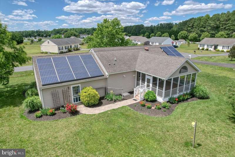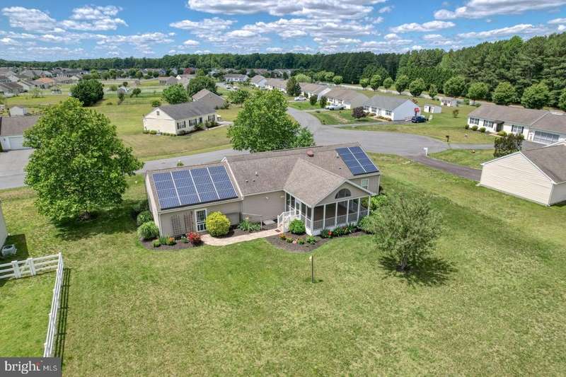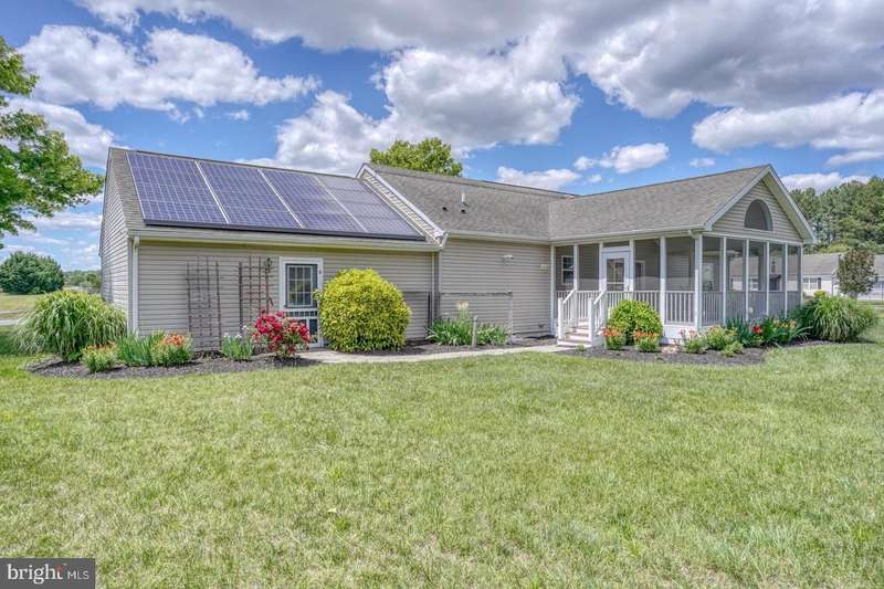 NEW HVAC & CARPETS! - Private Lot & Screened Porch! Welcome to this beautifully maintained ranch-style home nestled in the desirable Heron Bay community of Lewes, Delaware. Situated on a private, half-acre lot, this 3-bedroom, 2 bath home offers the perfect blend of comfort, efficiency, and community living. Inside, the split floor plan offers ideal privacy, featuring a spacious primary suite with ensuite bath, separated from the additional two bedrooms. The open-concept living area flows seamlessly into a well-appointed kitchen and dining space, perfect for entertaining or relaxing at home. Enjoy morning coffee or evening breezes on the screened-in porch, overlooking the peaceful backyard. Energy-conscious buyers will appreciate the home's solar panels, reducing utility costs and promoting sustainability. All new carpets installed, new HVAC-both a gas heater & central air, and a fresh fall landscape clean up! Heron Bay residents enjoy access to a range of community amenities including a clubhouse, swimming pool, tennis courts, and playground-all just minutes from the beaches, shopping, and dining that make Lewes a sought-after destination. Don't miss your chance to own a well-kept, move-in-ready home in one of the area's most welcoming neighborhoods! Solar lease is currently $81.39 a month, electric bill after is appx $28/monthly. Home also has an irrigation system with dedicated well, and additional low voltage lighting.