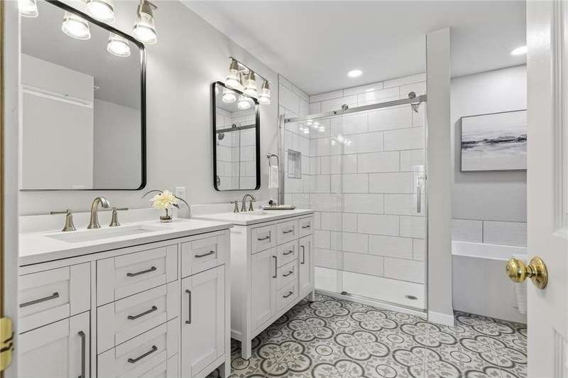 Amazing renovation! Walls removed & floorplan altered! Stunning Open-concept is light and bright! Brand new soft-close Kitchen cabinets, appliances and large granite island with plenty of seating; as well as 3/4" white oak flooring throughout the main floor! Primary bath also re-done down to the studs with large tiled walk-in shower, separate vanities and custom-tiled floor! New Roof, 2 fireplaces, Great Sunroom leading to the new maintenance-free Deck. Main floor office/Bedroom with adjoining ¾ bath is ideal for visitors with mobility challenges! Great mechanicals, large storage area with ample built-in shelving and cedar closet! This one is beautiful! Show and sell!