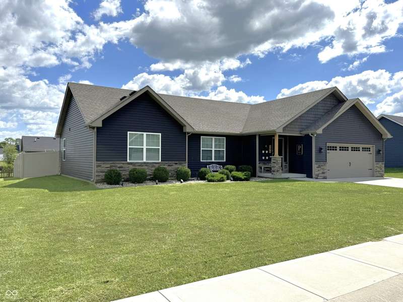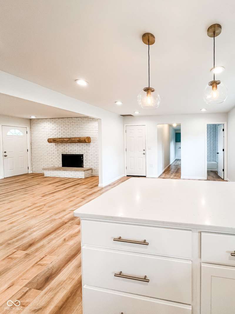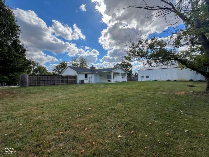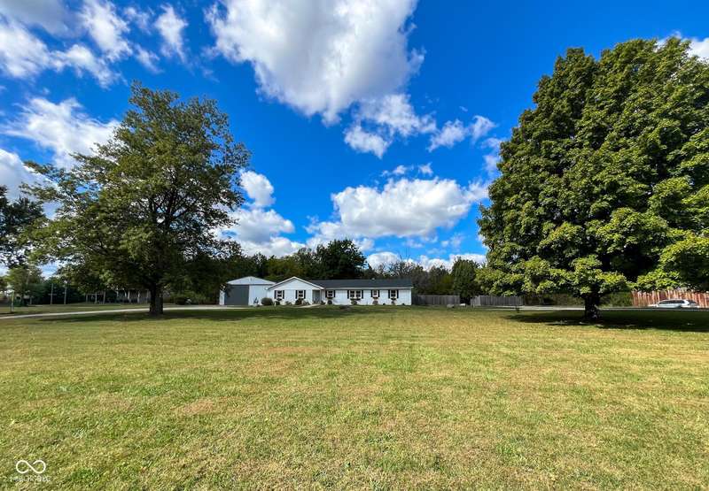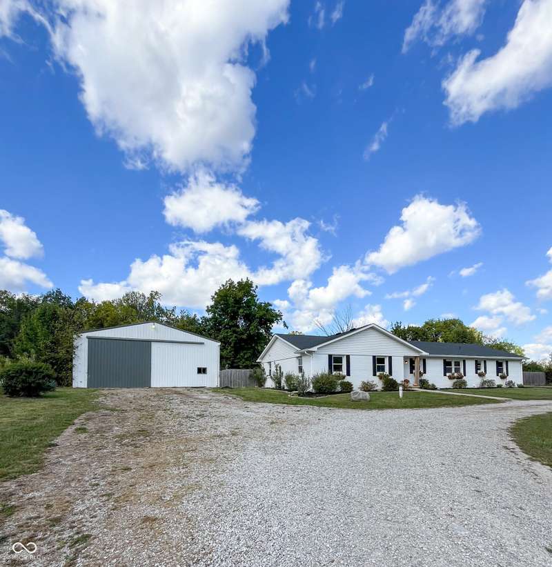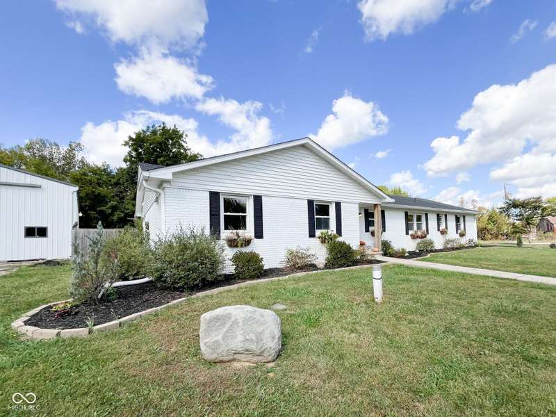 Experience the best of both worlds in this remodeled brick ranch. Enjoy country living on a spacious 1.8-acre lot while being less than a 5-minute drive from essential shopping, restaurants, and groceries. This home offers single-level convenience, an open concept floorplan and modern finishes throughout. The home includes 3 generous sized bedrooms and 2 full, updated bathrooms; the primary bathroom features a tiled walk-in shower and double-vanity. The heart of the home is the kitchen boasting durable quartz counters, a classic subway tile backsplash, a large pantry, and updated lighting. The spacious dining room is perfect for hosting and opens into an oversized living room flooded with natural light. A charming brick fireplace adds character and creates a centerpiece for the entire space. Your living space extends outdoors to a large, covered concrete patio, creating the perfect spot for relaxing or entertaining while overlooking the private, fenced rear yard. A standout feature is the massive 72x40 pole barn, offering limitless possibilities for a workshop, storage for vehicles and equipment, or the ultimate hobby space. This property is a rare find that perfectly combines modern updates, exceptional outdoor amenities, and convenience.