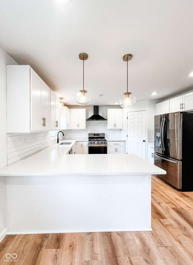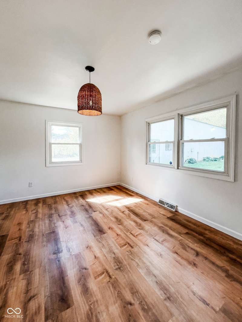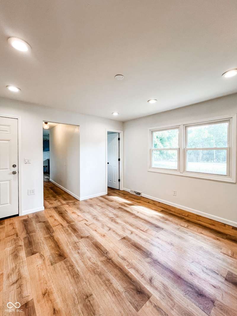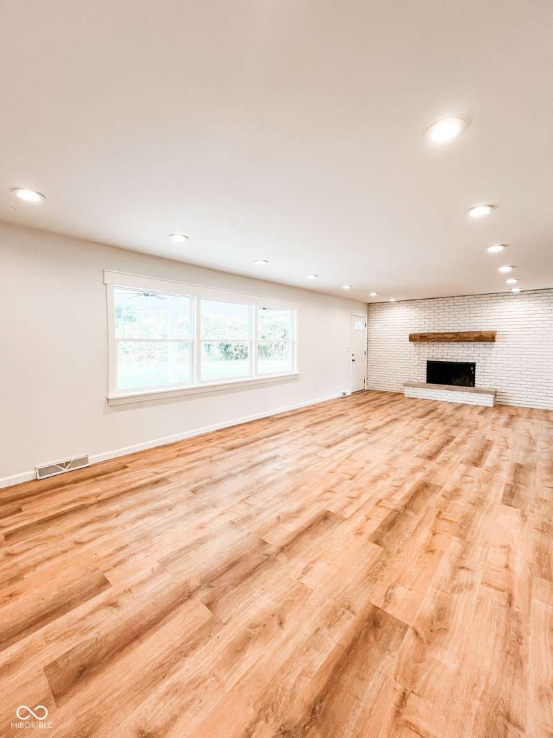 Experience the best of both worlds in this remodeled brick ranch. Enjoy country living on a spacious 1.8-acre lot while being less than a 5-minute drive from essential shopping, restaurants, and groceries. This home offers single-level convenience, an open concept floorplan and modern finishes throughout. The home includes 3 generous sized bedrooms and 2 full, updated bathrooms; the primary bathroom features a tiled walk-in shower and double-vanity. The heart of the home is the kitchen boasting durable quartz counters, a classic subway tile backsplash, a large pantry, and updated lighting. The spacious dining room is perfect for hosting and opens into an oversized living room flooded with natural light. A charming brick fireplace adds character and creates a centerpiece for the entire space. Your living space extends outdoors to a large, covered concrete patio, creating the perfect spot for relaxing or entertaining while overlooking the private, fenced rear yard. A standout feature is the massive 72x40 pole barn, offering limitless possibilities for a workshop, storage for vehicles and equipment, or the ultimate hobby space. This property is a rare find that perfectly combines modern updates, exceptional outdoor amenities, and convenience.